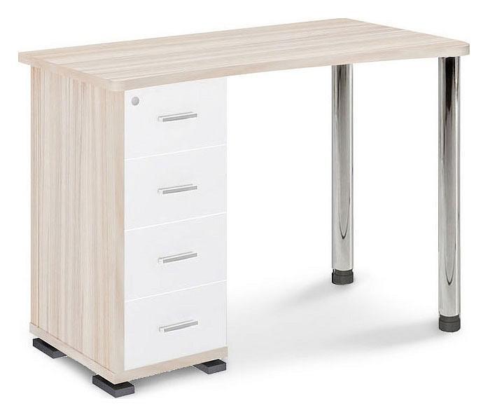 Учеба, работа или чтение – Стол письменный СКМ-50 , созданный брендом 2735048, отлично подойдет для реализации любых задач. Эта модель входит в серию «СКМ-50» и способен подстроиться под нужды каждого члена семьи. Благодаря оптимальным размерам изделия (1100Х620Х756 мм) вы сможете с комфортом заниматься любимыми и важными делами. Базовая комплектация включает в себя непосредственно письменный стол, 4 ящика. Для изготовления корпуса был выбран ЛДСП Е1, металл в оттенке карамель, хром, завершает дизайн глянцевый, матовый верхний слой, гармонично перекликающийся со столешницей.