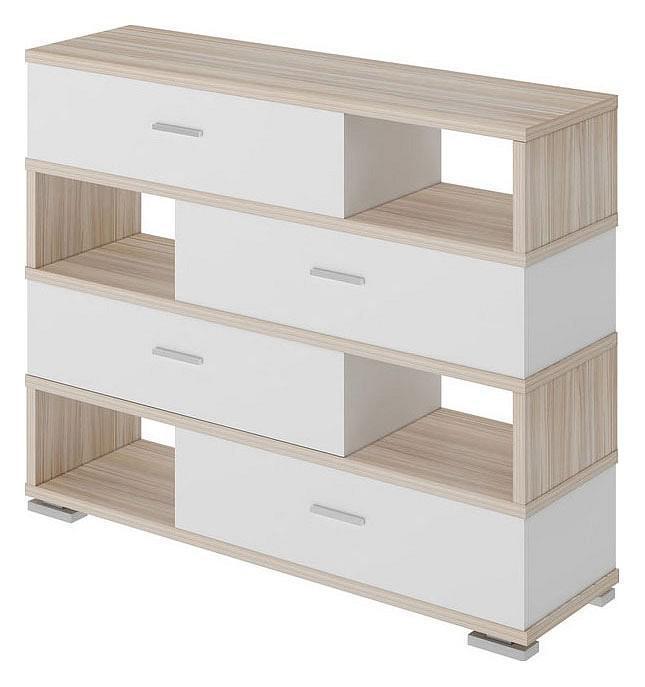 Когда все вещи лежат на своих местах – это залог уютного и аккуратного интерьера. Тем приятнее, когда зоной для хранения становится функциональная и практичная Тумба комбинированная Домино СБ-40 . Данная модель создана брендом Merdes и входит в серию «Латте». Матовый корпус тумбы сделан из износостойкого материала ( ЛДСП Е1) и окрашен в благородный оттенок «белый жемчуг, карамель». Производитель предлагает следующую комплектацию тумбы: 4 полки, 4 ящика.