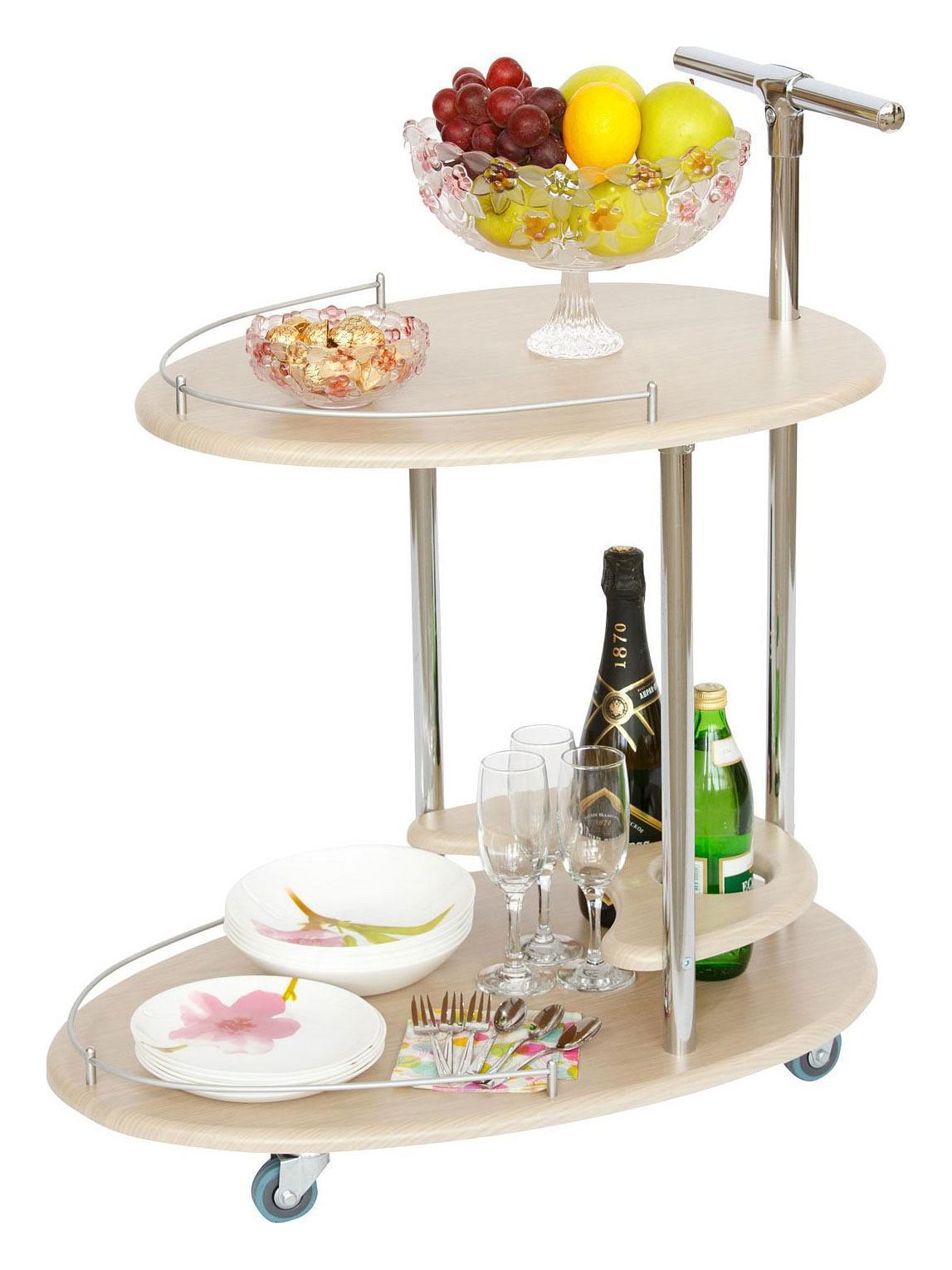 Столик оснащен держателем для бутылок, удобной ручкой и колесами для плавного, бесшумного и легкого перемещения. Современный сервировочный столик «Фуршет» отлично подходит для ежедневного использования и незаменим при приеме гостей.