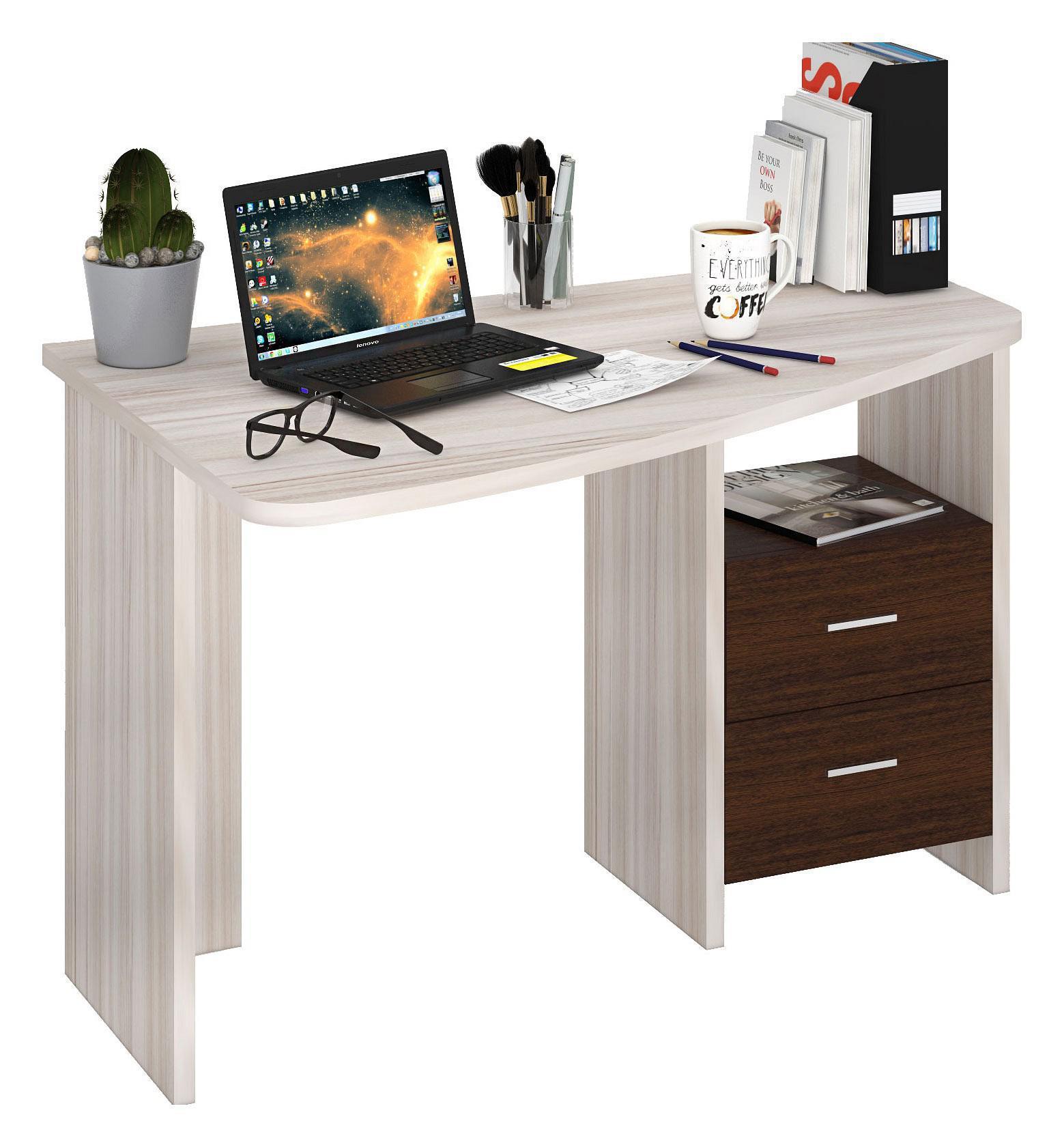 Учеба, работа или чтение – Стол письменный Домино Лайт СКЛ-Крл 120 , созданный брендом 2735048, прекрасно подойдет для выполнения любых задач. Данная модель входит в серию «Домино Лайт» и способен подстроиться под потребности каждого члена семьи. Благодаря оптимальным размерам изделия (Х1200Х770 мм) вы сможете с комфортом заниматься любимыми и важными делами. Базовая комплектация включает в себя непосредственно письменный стол, тумбочка: 1 полка, 2 ящика. Для изготовления корпуса был выбран ЛДСП Е1 в оттенке венге, карамель, завершает дизайн матовый верхний слой, гармонично сочетающийся со столешницей.