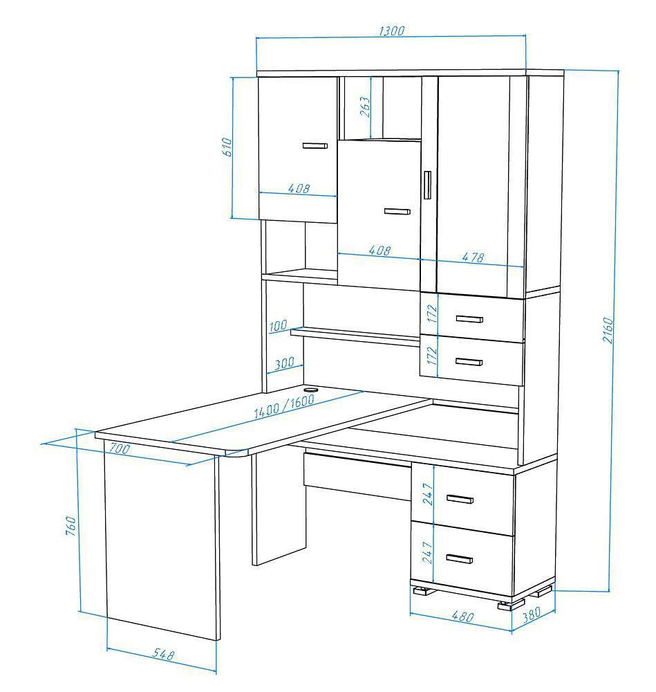 В современном мире мало кто обходится без персонального компьютера. Он необходим нам для работы, учебы или просто общения с близкими. Стол компьютерный Домино СР-620/160 – то, что нужно, чтобы сделать качественное рабочее пространство, позволяющее расположиться с максимальным комфортом. Данная модель создана компанией 2735048, серия «Домино», на товар предоставляется гарантия (12 мес.). Матовый корпус изготовлен из прочного и надежного материала (ЛДСП Е1) и отлично впишется в любой интерьер благодаря эффектному оттенку (белый). Столешница, толщина которой составляет 25 мм (материал столешницы), имеет матовый верх, при этом общие габариты компьютерного стола составляют 1300 мм в ширину и 2160 мм в высоту. Производитель также включил в комплект шкаф комбинированный: 3 дверцы, 4 ящика, полки.