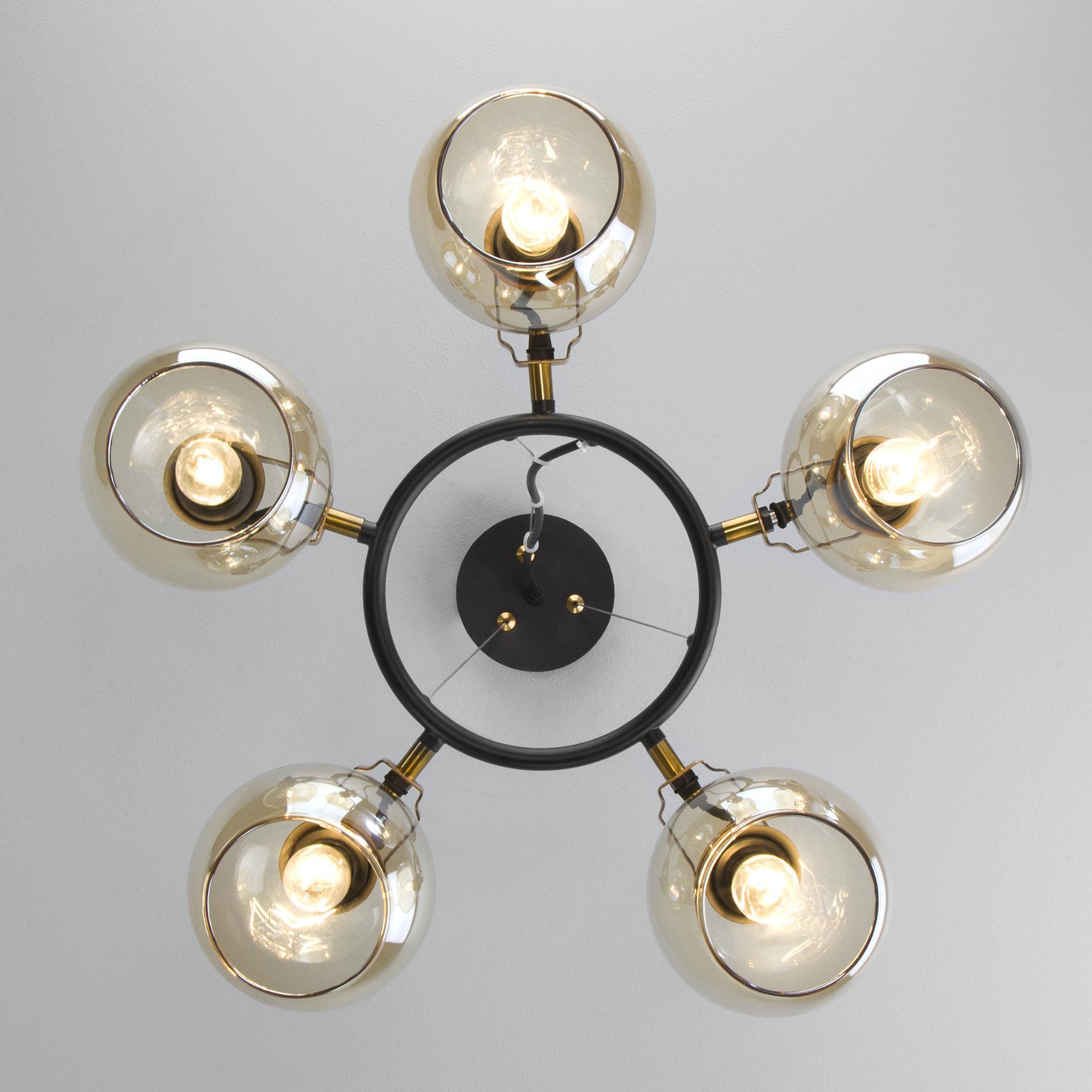 Преобразить ваше потолочное пространство и организовать качественное освещение на площади 15 м кв. поможет стильная люстра в стиле loft. Строгий внешний вид и конструктивная простота форм привнесут в современный интерьер индустриальный стиль, а гармоничный цветовой тандем из черного и бронзы подчеркнет его. В пятирожковой люстре используются сменные лампы с цоколем E14, рассчитанные на максимальную мощность 60 Вт. Потолочный светильник оснащен стеклянными плафонами и поворотным механизмом, позволяющим направлять световой поток в нужном направлении. В производстве люстры использован высококачественный металл с надежным защитным покрытием и закаленное стекло. Наш интернет-магазин предлагает недорого купить потолочную люстру с бесплатной доставкой по Москве и России.