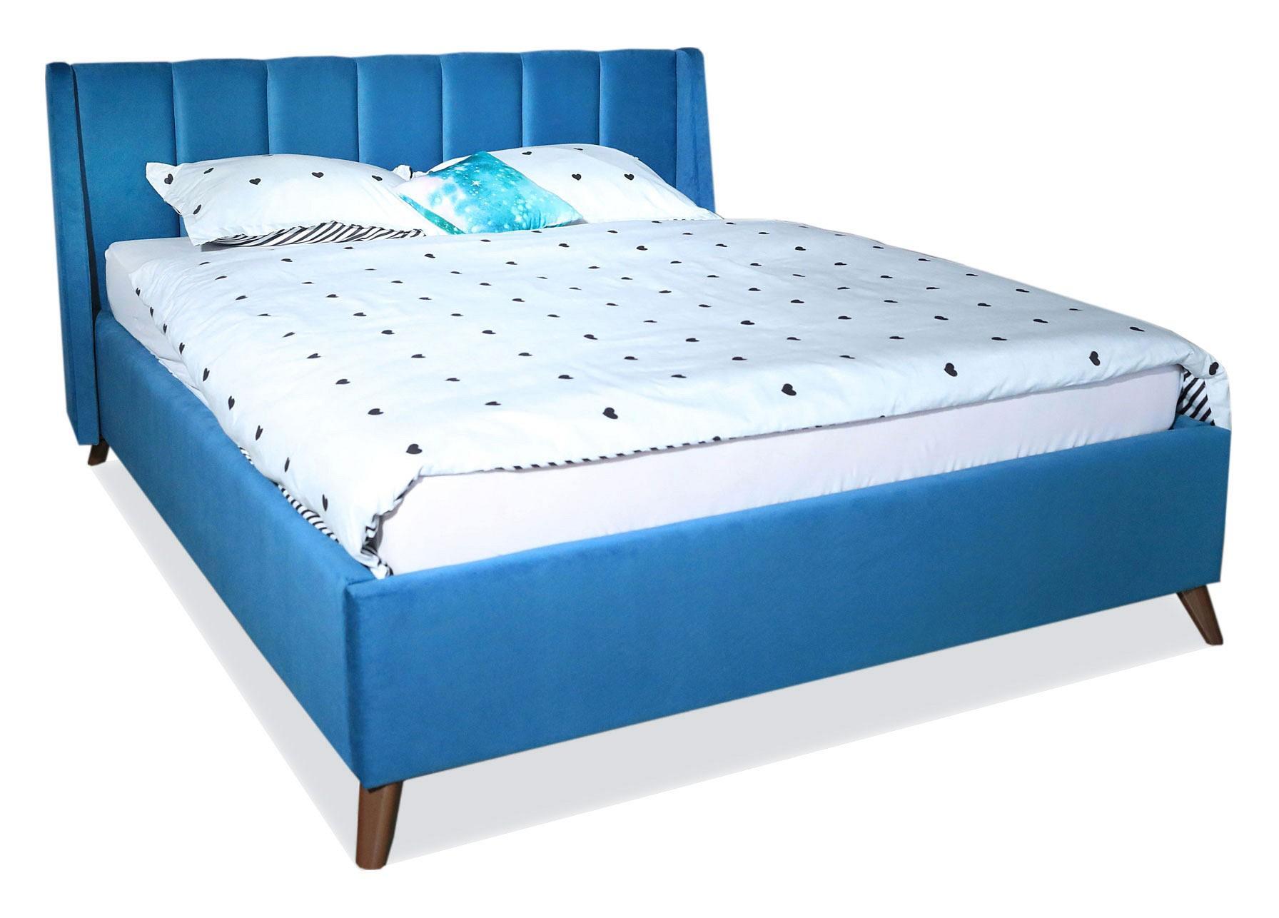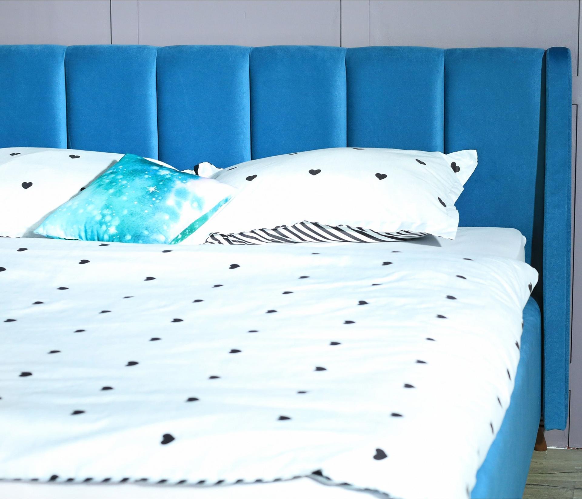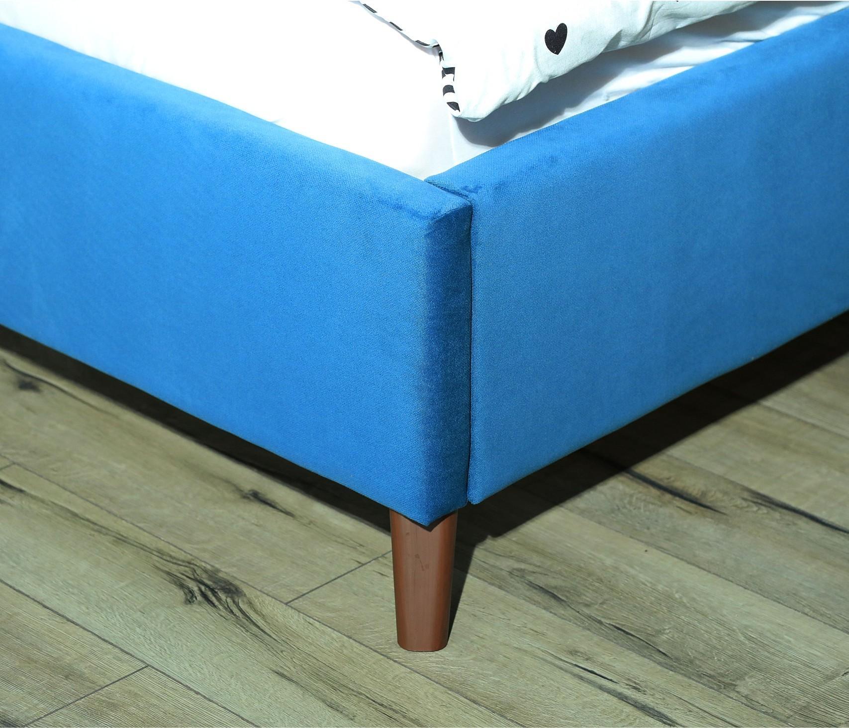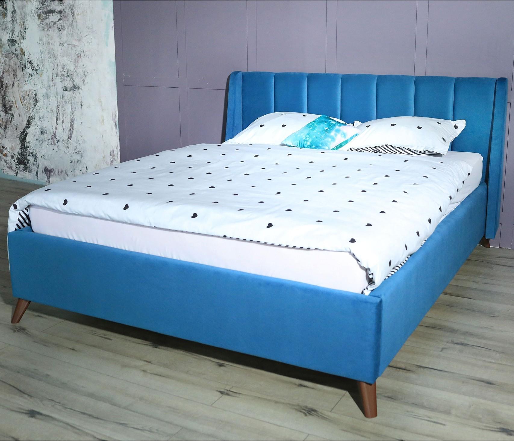 Кровать имеет рельефную мягкую спинку с неглубокими стяжками, которые придают особую изысканность изголовью. Обивка изголовья и весь периметр кровати выполнен из мебельной ткани – велюр. Ткань износостойкая, легко чиститься от загрязнений, практичная, эластичная, устойчивая к ультрафиолету.