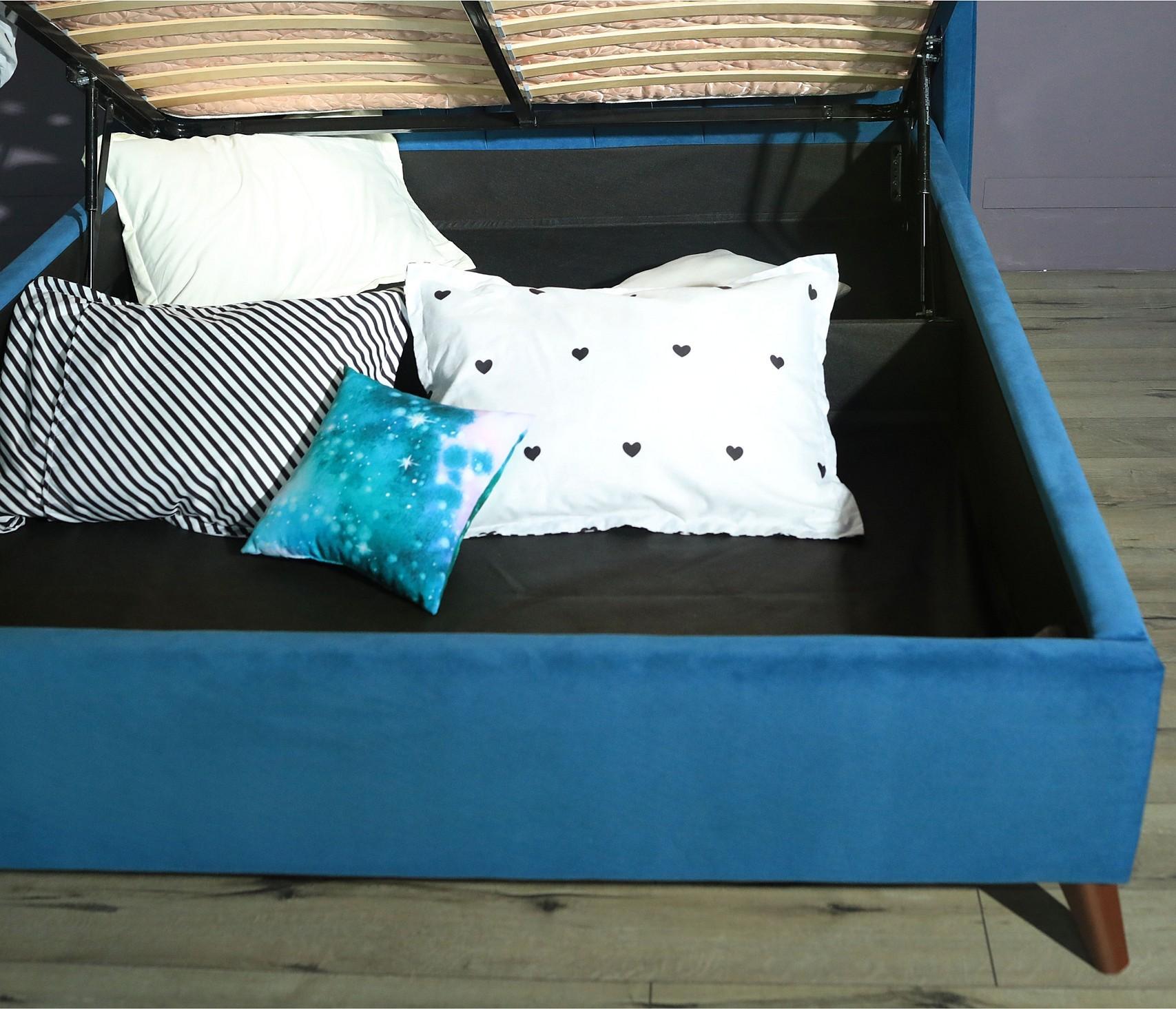 Газлифты повышенной мощности позволяют поднимать и опускать ортопедическую рамку с матрасом без всяких усилий. Подкроватная часть предназначена для хранения постельных принадлежностей, которое закрывается противопыльным матерчатым коробом из плотного спанбонда. Матерчатый короб фиксируется в подматрасном пространстве с помощью системы ленты-липучки "HOOK&LOОP".