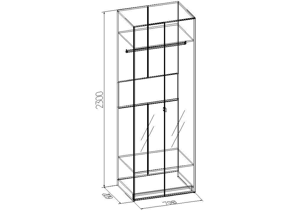 1 штанга для вешалок,2 дверцы, 2 полки