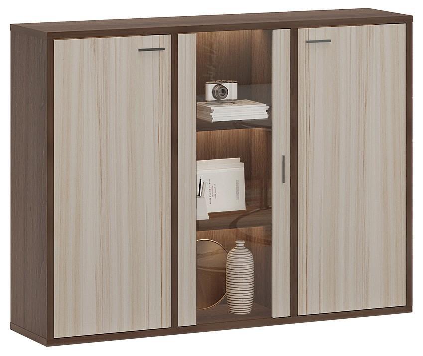 Порядок в доме – это залог красивого и аккуратного интерьера. Тем приятнее, когда зоной для хранения становится функциональная и практичная тумба-витрина Домино СУ(ш3в1)+2ФГ+1ФС MER_SUsh3v1-2FG-1FS-SHK-shamoni-CH-karamel. Эта модель создана компанией Merdes и относится к коллекции Домино. Матовый корпус изделия сделан из популярного материала (ЛДСП Е1) и окрашен в благородный оттенок «шамони». Тумба-витрина Домино СУ(ш3в1)+2ФГ+1ФС стоит 15790 руб.