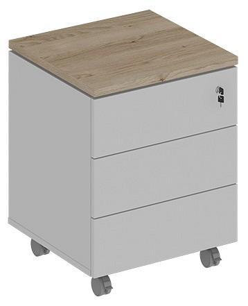 Тумбочка имеет 3 выдвижных ящика, установленных на направляющие TANDEM (BLUM) частичного выдвижения на 75% глубины, имеющие плавный ход и системой открывания Push To Open (без ручек). Динамическая нагрузка 30 кг. Верхний ящик тумбы запирается на замок. Тумба устанавливается на прорезиненные колесные опоры, две из них имеют стопор.