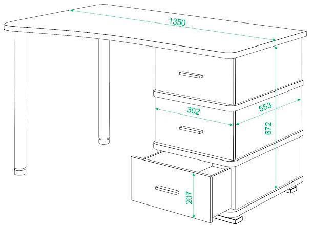 Учеба, работа или чтение – Стол письменный СД-35 MER_SD-35_SH_LEV, созданный брендом 2735048, отлично подойдет для реализации любых задач. Эта модель входит в коллекцию «Домино» и адаптирован под нужды каждого члена семьи. Благодаря оптимальным размерам изделия (1350Х800Х756 мм) вы сможете с комфортом заниматься любимыми и важными делами. Базовая комплектация включает в себя непосредственно письменный стол, тумбочка: 3 ящика. Для изготовления корпуса был выбран ЛДСП Е1, металл в оттенке хром, шамони, завершает дизайн глянцевый, матовый верхний слой, гармонично перекликающийся со столешницей. Приобрести данную модель вы можете по привлекательной цене, равной 12990 руб.