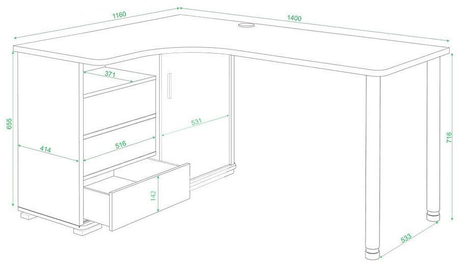 Работа или развлечения – Стол письменный СР-145СМ MER_SR-145SM_KSHK-PRAV, созданный брендом 2735048, прекрасно подойдет для выполнения любых задач. Данная модель входит в серию «Домино» и способен подстроиться под потребности каждого члена семьи. Благодаря оптимальным размерам изделия (1400Х1160Х745 мм) вы сможете с комфортом заниматься любимыми и важными делами. Базовая комплектация включает в себя непосредственно письменный стол, тумба: