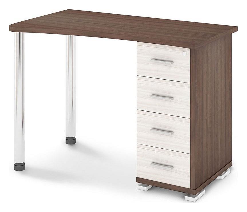 Работа или развлечения – Стол письменный СКМ-50 MER_SKM-50_SHK-LEV, созданный брендом 2735048, прекрасно подойдет для реализации любых задач. Эта модель входит в серию «Домино» и адаптирован под потребности каждого члена семьи. Благодаря оптимальным размерам изделия (1100Х620Х765 мм) вы сможете с комфортом заниматься любимыми и важными делами. Базовая комплектация включает в себя непосредственно письменный стол, тумбочка: 4 ящика. Для изготовления корпуса был выбран ЛДСП Е1, металл в оттенке хром, шамони, завершает дизайн глянцевый, матовый верхний слой, гармонично перекликающийся со столешницей. Приобрести данную модель вы можете по привлекательной цене, равной 8990 руб.