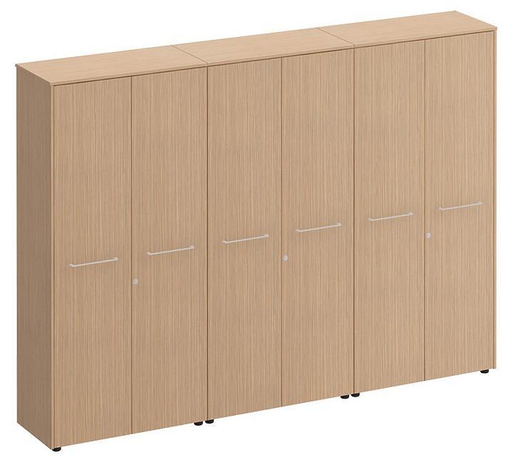 Шкаф укомплектован шестью дверями из ЛДСП с замками на правых дверях каждой секции.