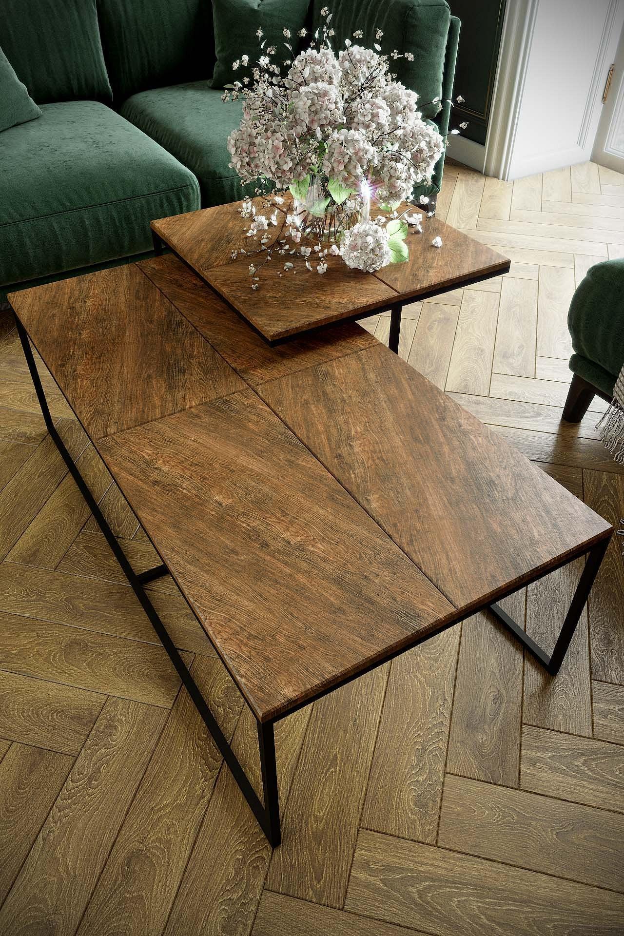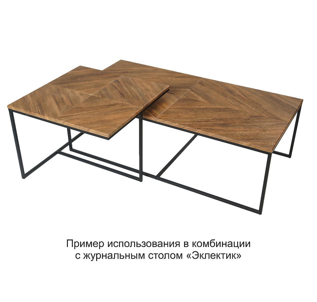 Оригинальность столу Эклектик придает дизайн столешницы с необычным направлением текстуры пленки американского дуба. Лаконичность форм и практичность исполнения столика безусловно будет залогом отличного дизайнерского оформления гостиной.