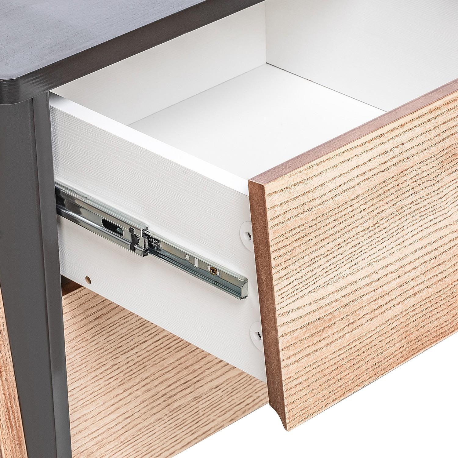 Акценты в новой моделе тумбы под ТВ расставлены правильно – экологичные материалы, мягкий дизайн и прочный каркас. В основе продукта заложен принцип функциональности для комфортного ежедневного использования. Конструкцией предусмотрена открытая секция для техники с задней стенкой и вместительные ящики с плавным закрыванием.