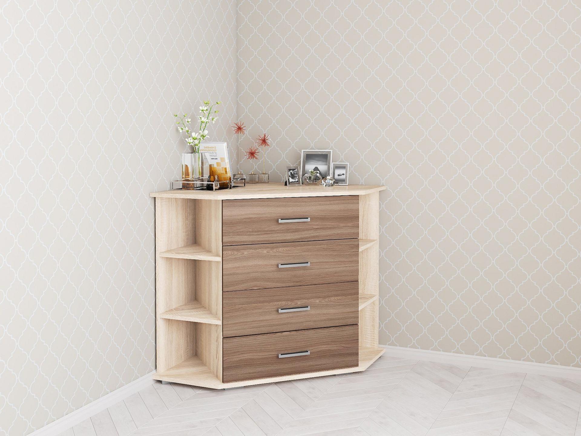 Мелочи создают общее настроение в интерьере, особенно, если лежат не на своем месте. Справиться с этой задачей поможет комод Катрин-7 TKS_00-00003861, созданный популярным брендом Тэкс. Данная модель входит в серию «Катрин-7» и стоит 6322 руб. Производитель предлагает следующую комплектацию: 4 полки, 4 ящика. Матовый корпус изготовлен в благородном оттенке «дуб сонома», тонко перекликающимся с расцветкой фасада (ясень шимо), изготовленного из качественного сырья (ЛДСП Е1). Благодаря оптимальным размерам комода (изделие длиной 790 мм, шириной 770 мм и выступом мм), вы сможете разместить в нем все необходимое, при этом сохранив полезное пространство в комнате.