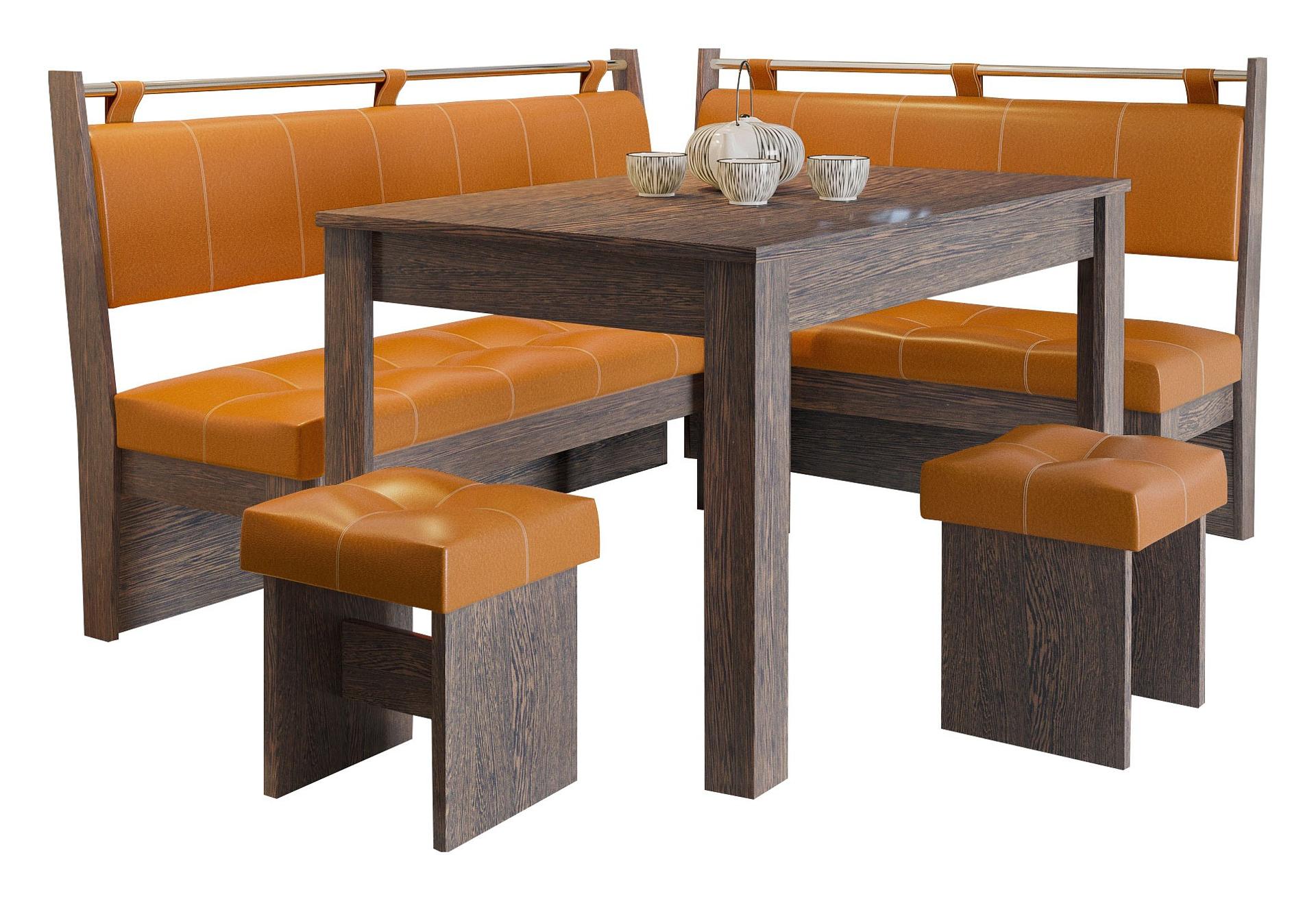 Кухонный уголок, пожалуй, одно из самых уютных мест в доме. Все члены семьи удобно располагаются на мягких сиденьях, облокачиваются на удобные спинки и наслаждаются ужином. Хотите, чтобы и ваша кухня стала такой привлекательной? Тогда вам обязательно стоит обратить свое внимание на уголок кухонный Остин ETO_00-00001915 из коллекции «Остин». Данная модель элегантна и комфортна, угол универсальный, поэтому изделие отлично впишется в любую обеденную зону. В комплект, представленный брендом ЭТОмебель, входит стол - 1200x600x740 мм диван - 1534x1134x940 мм 2 табурета - 330x330x465 мм, стол не раскладывается. Столешница выполнена из ЛДСП Е1 в оттенке «венге», отлично дополняя матовый корпус. Уголок кухонный Остин вы можете приобрести за 23100 руб. Приятных покупок!