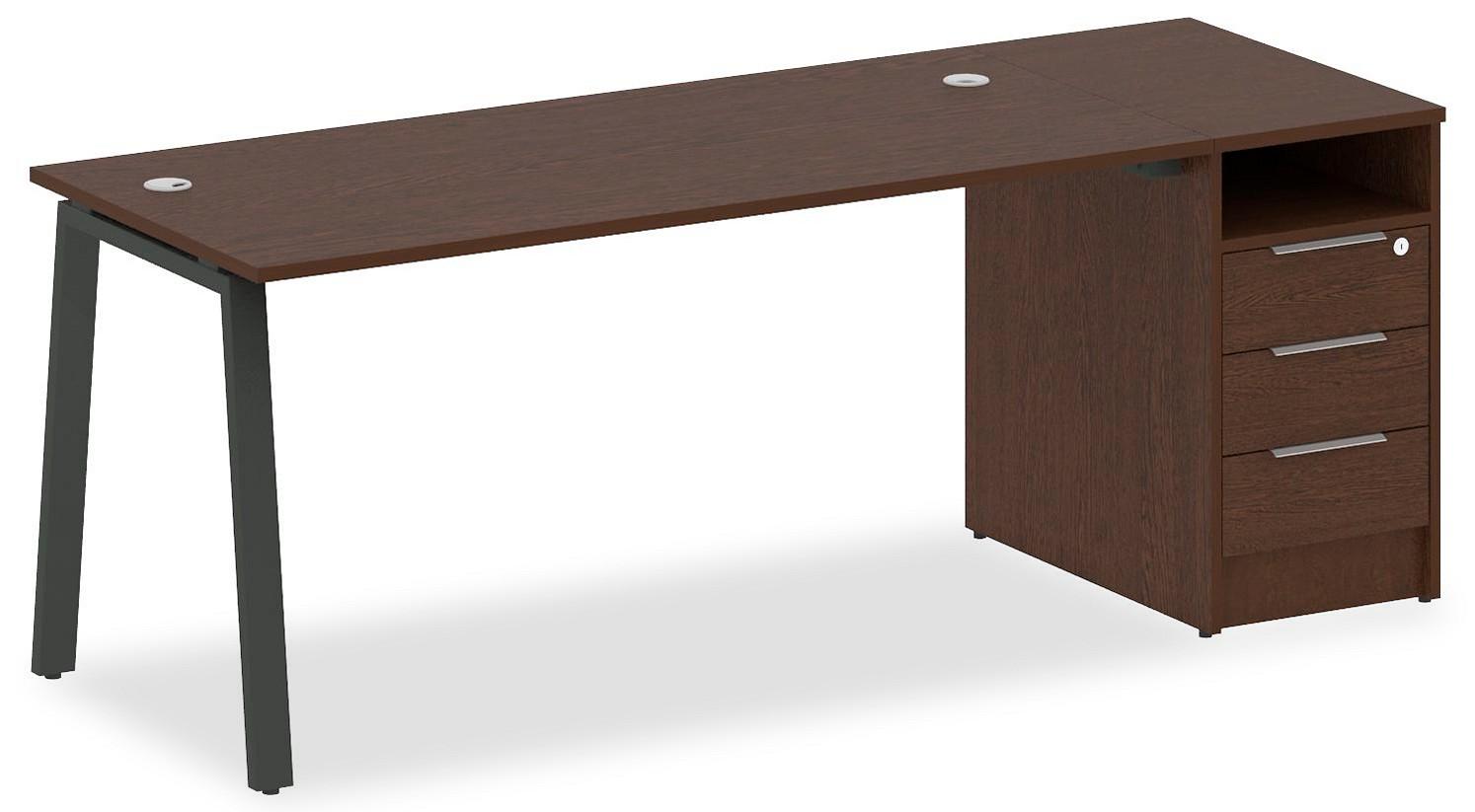 • 3 ящика. Для изготовления корпуса был выбран ЛДСП Е1, металл в оттенке антрацит, венге, завершает дизайн матовый верхний слой, гармонично перекликающийся со столешницей. Купить данную модель вы можете по привлекательной цене, равной 23156 руб.