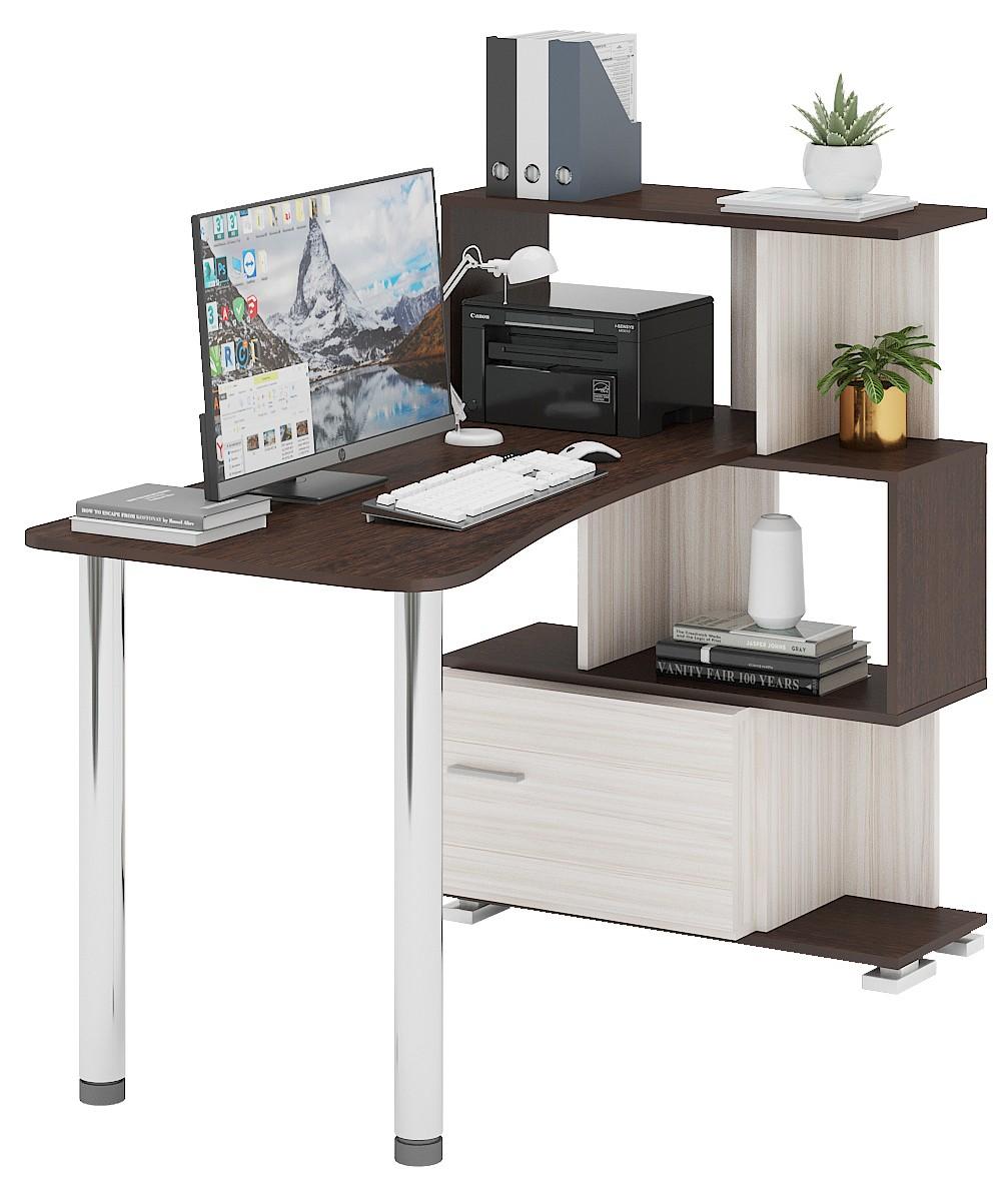 Компьютер давно стал частью нашей жизни. Стол компьютерный Домино СЛ-5-3СТ-2+БД MER_SL-5-3ST-2-BD-VKVK – то, что нужно, чтобы сделать удобное рабочее пространство, позволяющее расположиться с максимальным комфортом. Эта модель создана брендом 2735048, серия «Домино», на товар предоставляется гарантия (12 мес.). Глянцевый, матовый корпус изготовлен из прочного и надежного материала (ЛДСП Е1) и прекрасно впишется в любой интерьер благодаря выигрышному оттенку (венге, карамель, хром). Столешница, толщина которой составляет 25 мм (материал столешницы), имеет матовый верх, при этом общие габариты компьютерного стола составляют 1182 мм в ширину и 1060 мм в высоту. Производитель также включил в комплект стеллаж: