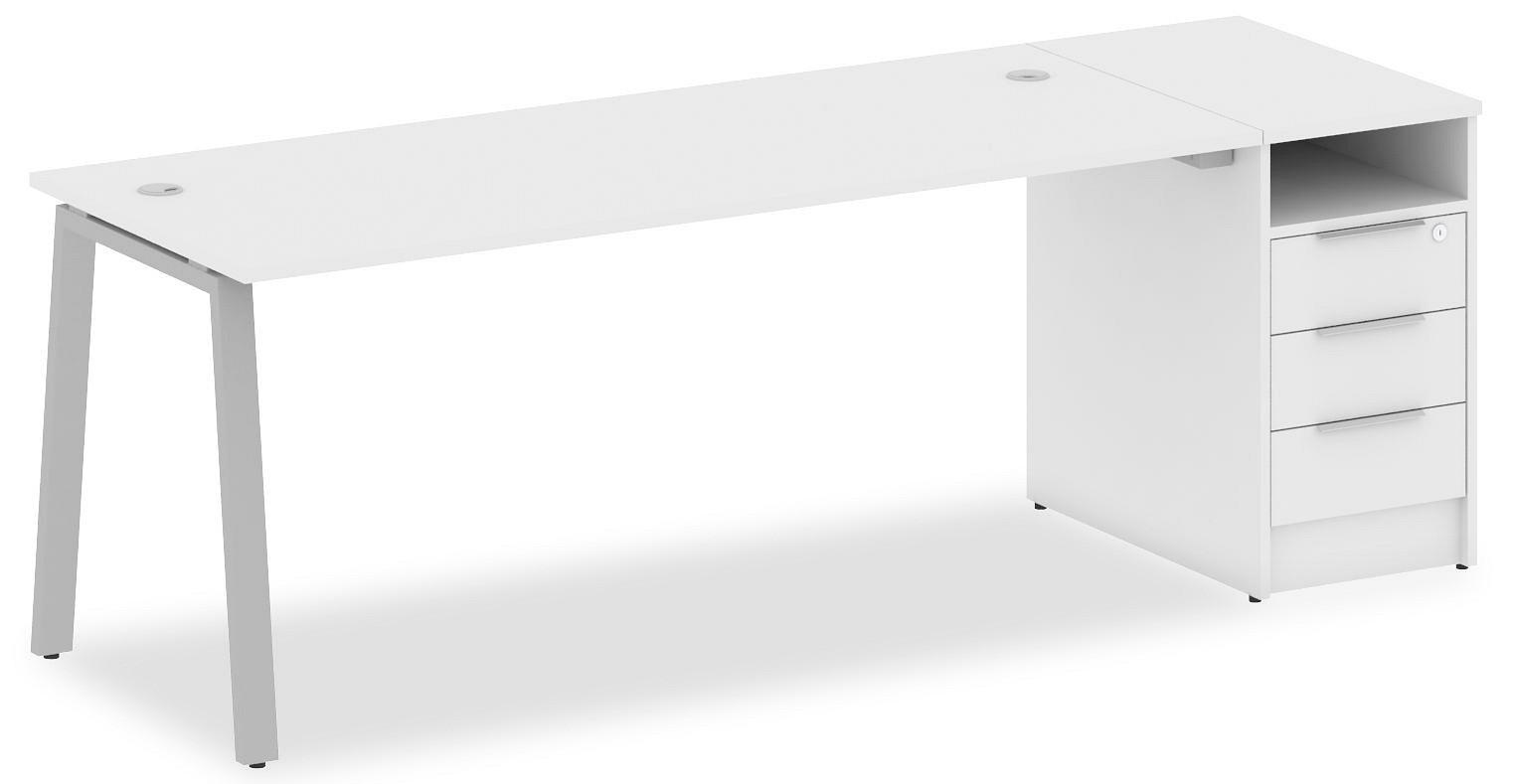 • 3 ящика. Для изготовления корпуса был выбран ЛДСП Е1, металл в оттенке белый, серый, завершает дизайн матовый верхний слой, гармонично сочетающийся со столешницей. Купить данную модель вы можете по привлекательной цене, равной 23786 руб.