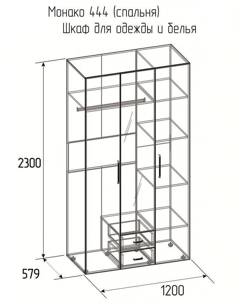 Шкаф платяной Монако 444 создан брендом Глазов-Мебель (Россия) и входит в серию Монако. Зеркальный, матовый фасад сделан из качественных и долговечных материалов (зеркало, ЛДСП Е1) и прекрасно дополняет матовый корпус изделия. Шкаф платяной Монако 444 наиболее актуален для таких помещений, как гостиная, кабинет, прихожая, спальня и имеет следующие габариты: 1200 мм. в ширину, 2300 мм. в высоту, глубина шкафа составляет 579 мм. В комплектацию данной модели входит 1 штанга для вешалок, 2 ящика, 3 дверцы, 5 полок, входящие в комплект, а срок изготовления обычно не превышает 3 дней. На изделие распространяется гарантия 24 месяцев. Купить шкаф платяной монако 444 можно в интернет-магазине Mebelion.ru за 26159 руб.
