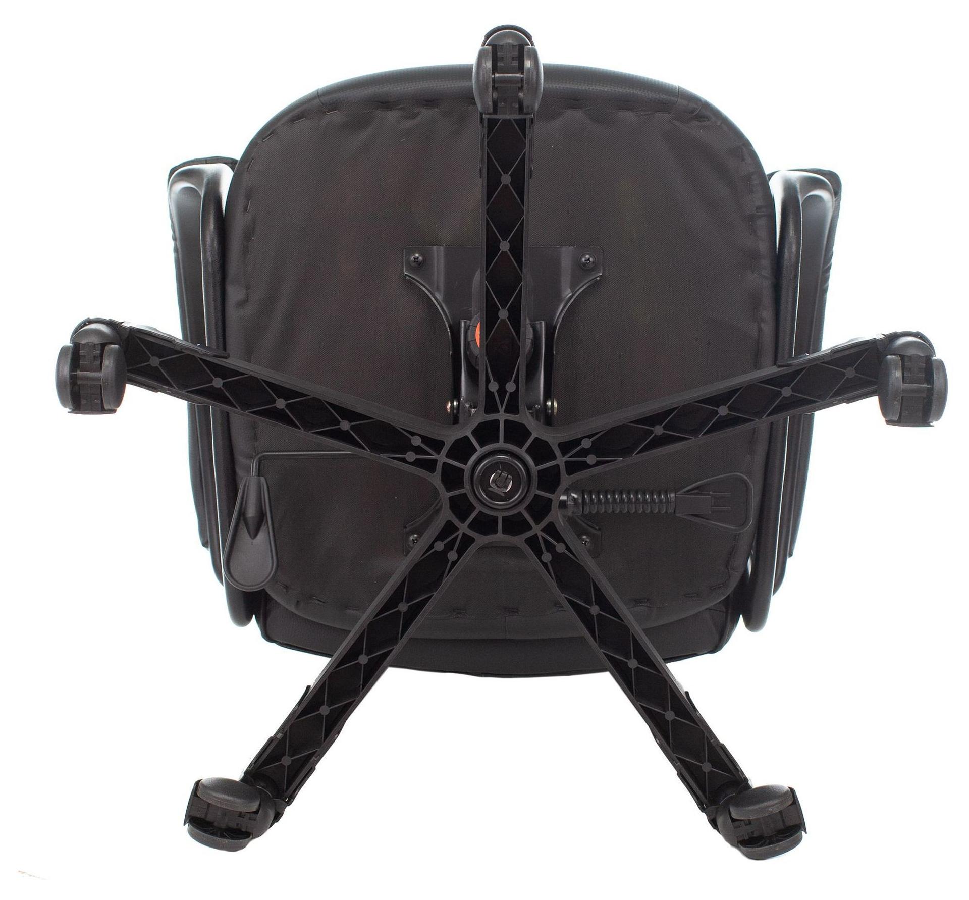 Механизм качания с возможностью фиксации в любом положении (топган-люкс). Регулировка высоты (газлифт). Пластиковые подлокотники с мягкими накладками из экокожи. Крестовина пластиковая с цветными накладками под цвет чехла.