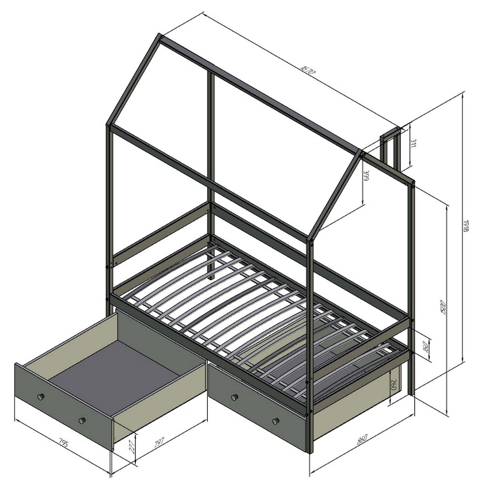 высота крыши - 399 мм,