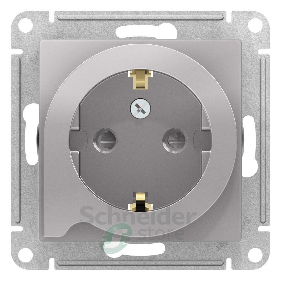 ATLASDESIGN РОЗЕТКА с заземлением со шторками с выталк., 16А, механизм, АЛЮМИНИЙ