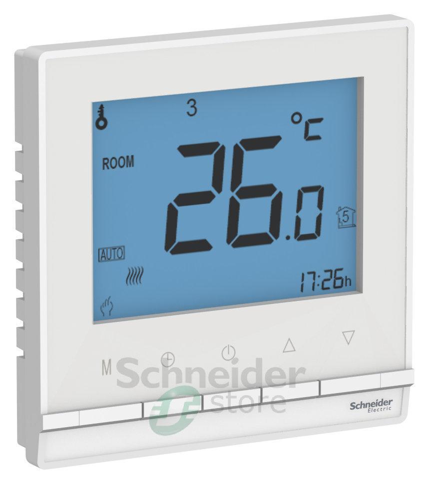 Термостат Schneider Electric AtlasDesign (в сборе, цвет белый) электронный программируемый.- Пластик с ионами серебра в белом цвете обеспечивает антибактериальный эффект.- Электронный механизм с цифровым дисплеем обеспечивает точное поддержание заданных значений и позволяет запрограммировать режим работы и расписание на каждый день недели.- Может контролировать как теплый пол, так и электрические обогреватели.- Внешний термодатчик 2,5 м входит в комплект.- Встроенная защита от замерзания и перегрева.
