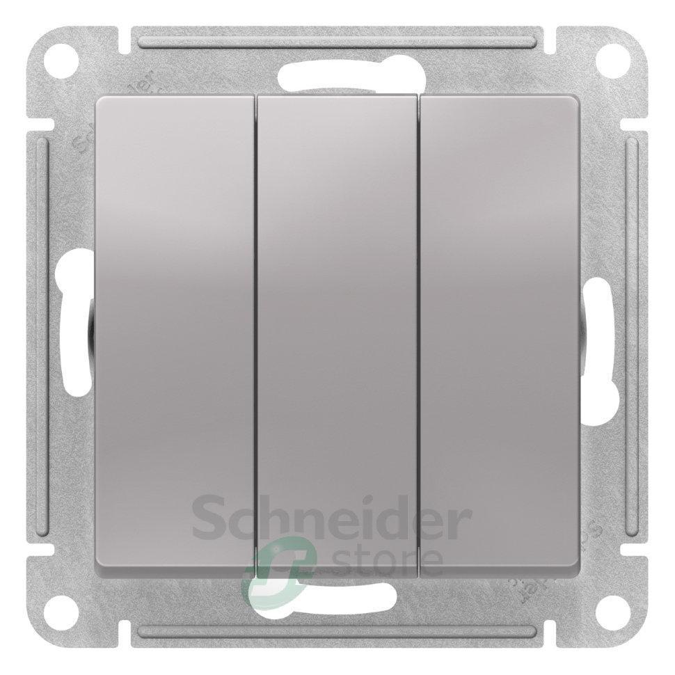 Механизм Schneider Electric AtlasDesign (цвет алюминий) выключателя 3-клавишного подходит для сетей 250 В, на ток 10 А.