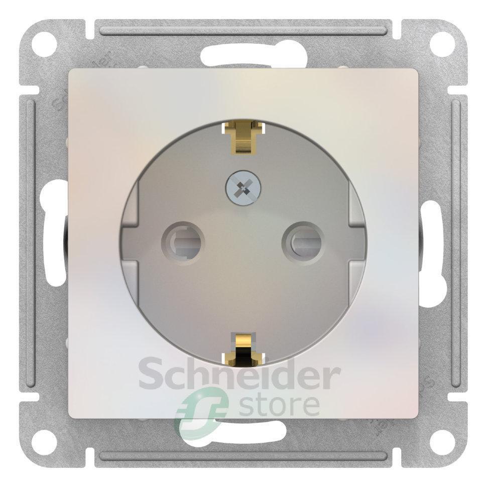 Механизм Schneider Electric AtlasDesign (цвет жемчуг) розетки одинарной с заземлением и шторками подходит для сетей 250 В, на ток 16 А.