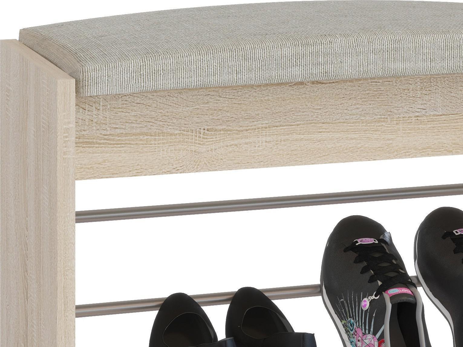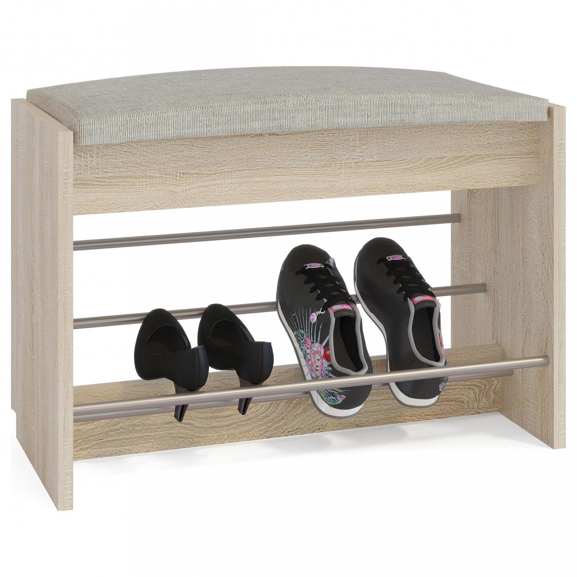 Удобная банкетка с полочками для обуви - полезный элемент в прихожей. Модель прекрасно подойдет для небольшого помещения благодаря компактным размерам. Открытые полочки позволяют разместить до четырех пар обуви.