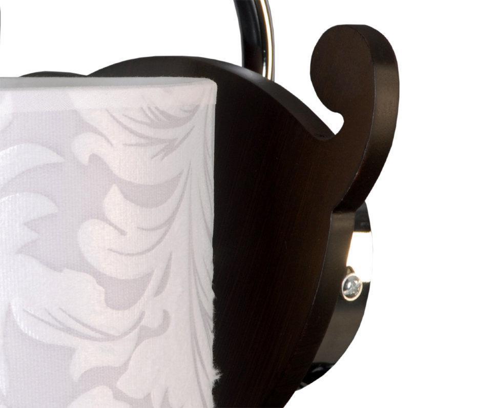 ЛОРЕНЗА. ЛОРЕНЗА - с претензией на оригинальность. Основанием рожков служит деревянная, замысловатой формы фигура с хромированными деталями для крепления абажуров. Абажуры из ткани далеки от классических, так как имеют треугольные очертания.