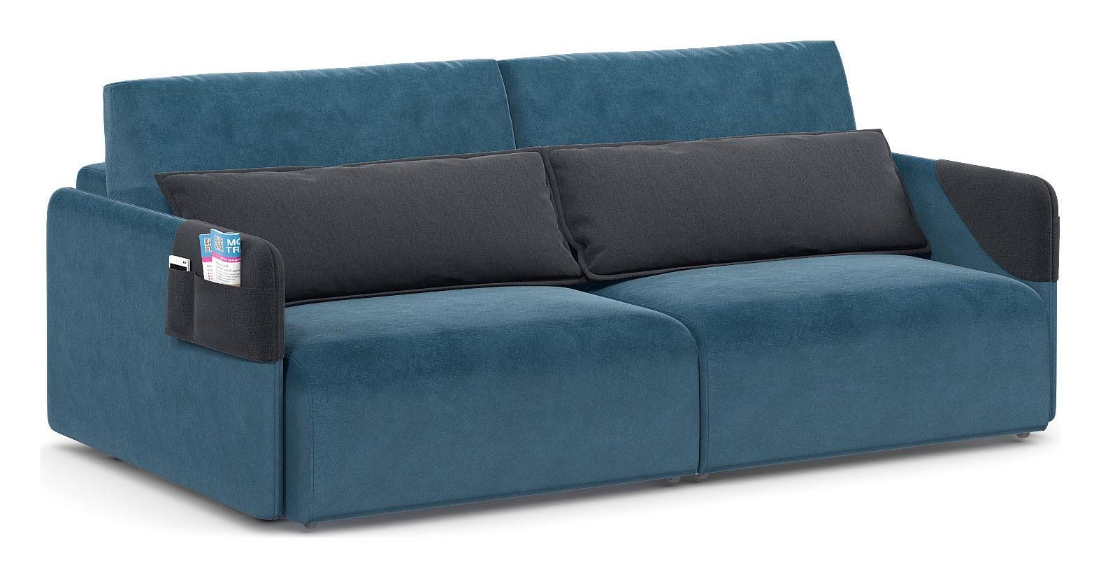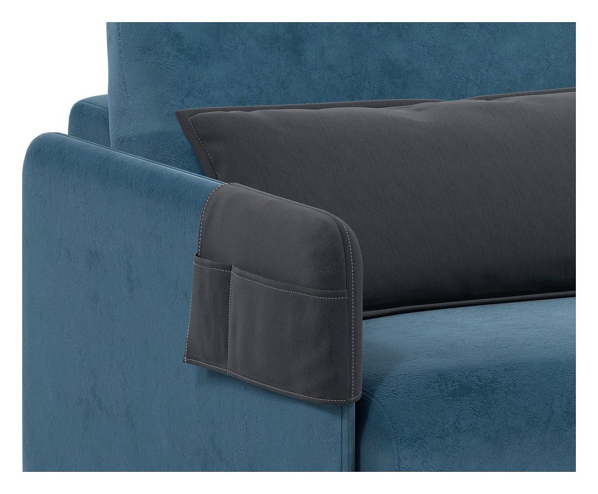 Диван оснащен функциональными карманами на подлокотниках, которые представляют собой съемные элементы. В них легко разместить пульт от телевизора или телефон. Практичные карманы служат дополнительной защитой обивочной ткани подлокотников от загрязнений. Их можно использовать в разных положениях, подстраивая под индивидуальные потребности.