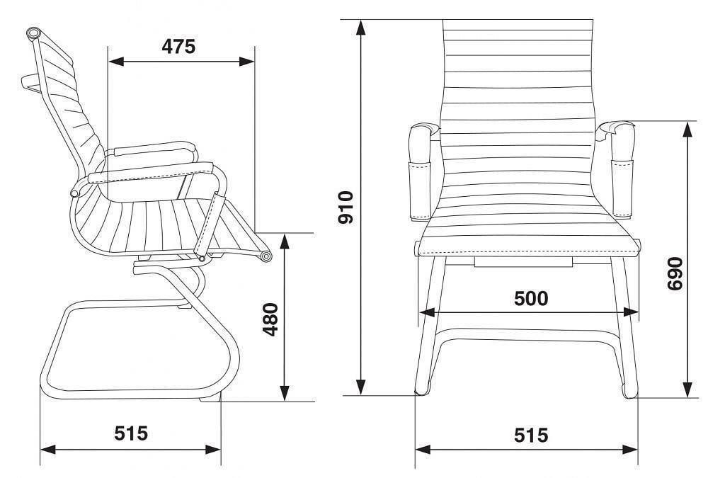 Ширина сиденья - 500 мм, глубина сиденья - 475 мм, высота сиденья - 480 мм. Высота подлокотников - 690 мм.