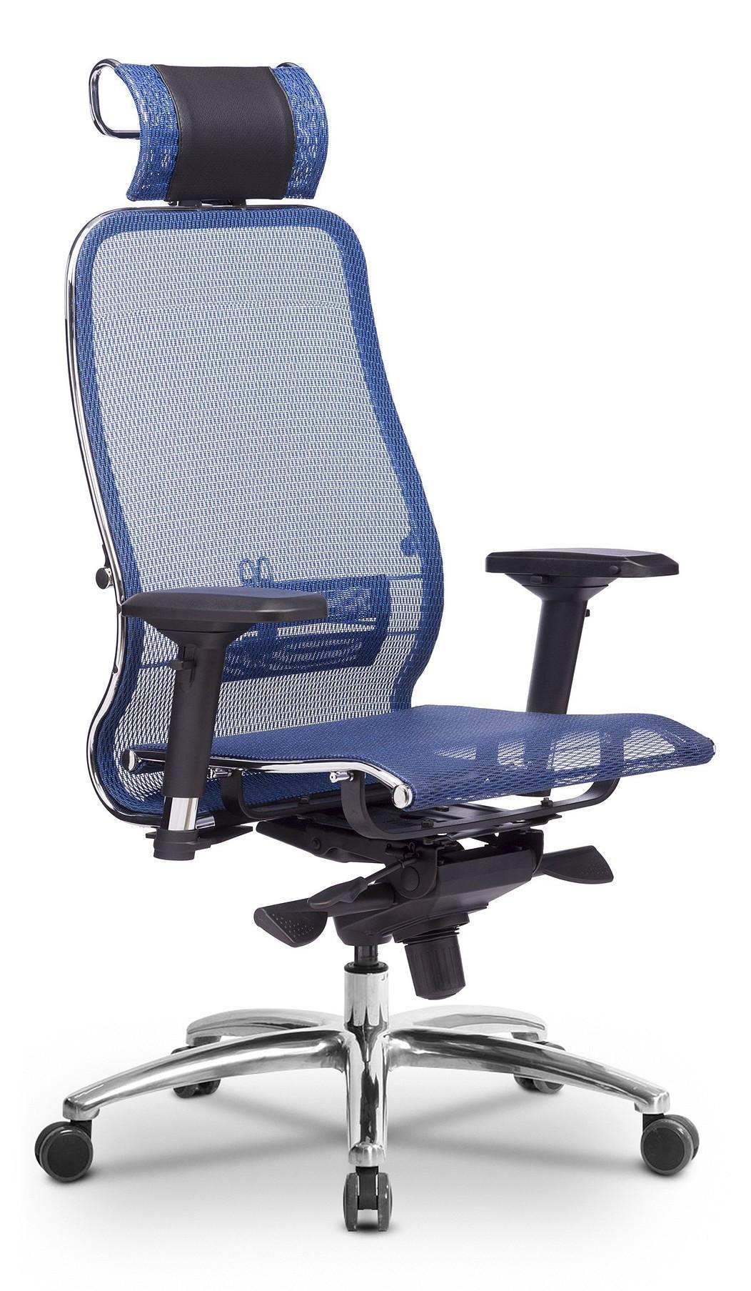 Кресло офисное S-3.04, синий, кожа искусственная NewLeather, ткань сетчатая, армированная арамидным волокном