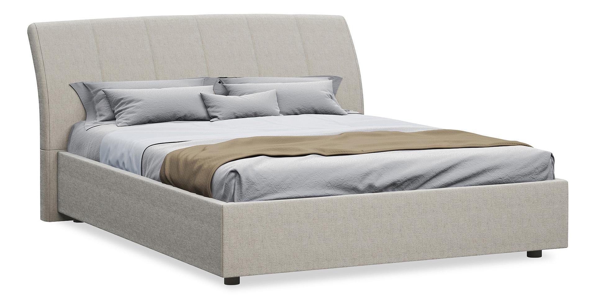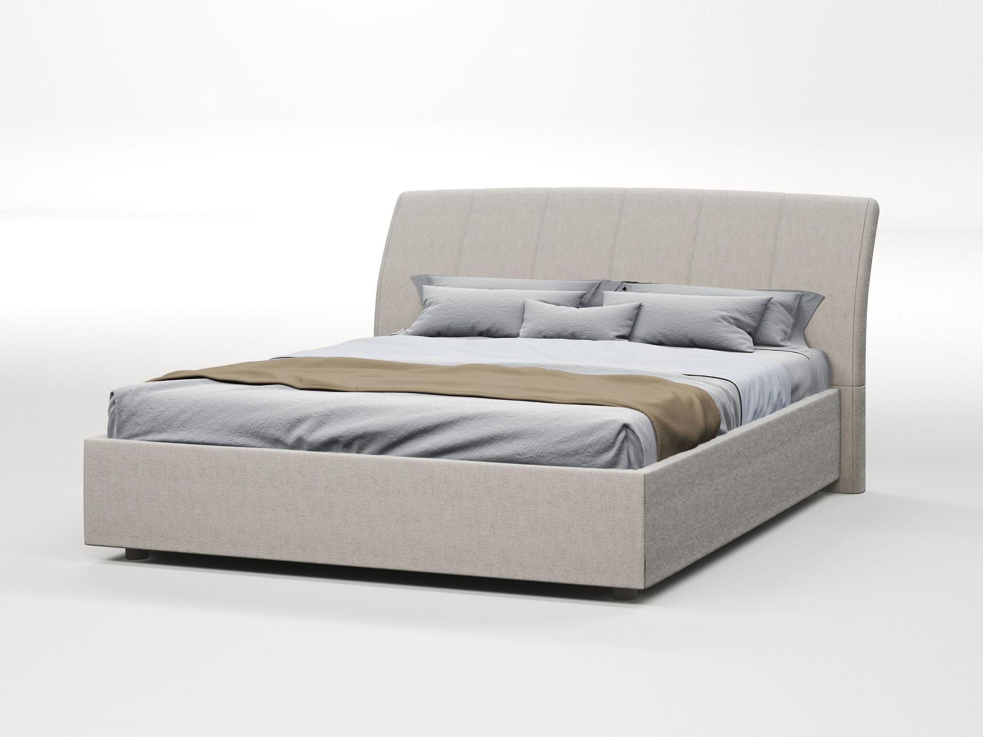 Стильная интерьерная кровать с изогнутым изголовьем и широкими царгами. В комплект кровати входит кроватное основание. Каркас основания выполнен из металла, ламели - из берёзы.