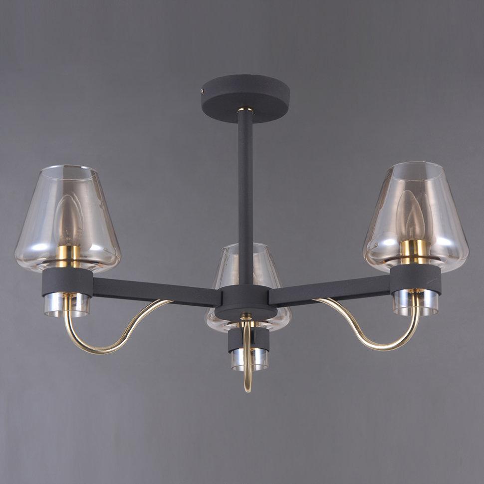 РИТИ. Прямые линии сочетающие в себе черный цвет и античную бронзу раскинулись в одной плоскости, а их свободные края держат необычной формы из стекла с гальваническим покрытием разливают вокруг теплый свет уюта.