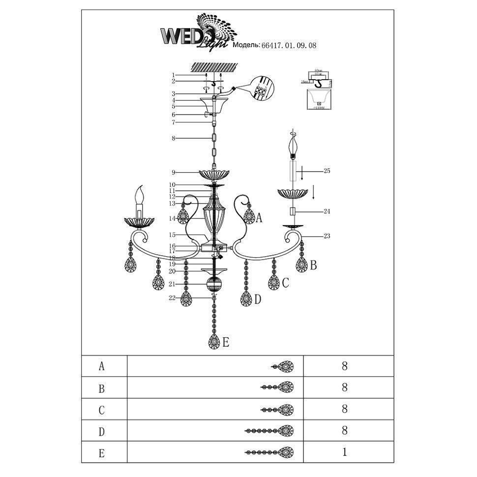 Семь Огней создает продукт от эскиза до готового шедевра. Над созданием светильников трудятся одни из лучших дизайнеров и конструкторов. Наша компания предъявляет высокие требования к производимой продукции, что подтверждено сертификатами качества.ПРЕИМУЩЕСТВАЭлегантный дизайнХрусталь превосходного качестваПРИМЕНЕНИЕПодвесная люстра предназначена для основного освещения помещенийЛюстра отлично подойдет в гостиную, зал, спальню, столовуюКОНСТРУКЦИЯ И МАТЕРИАЛЫЛюстра изготовлена из высококачественных материалов и является безопасной для человека, животных и окружающей средыКонструкция позволяет регулировать высоту люстры изменением количества звеньев цепиИспользуемые материалы: металл, хрустальИсточник света - лампы накаливания мощностью до 60Вт, светодиодные лампы мощностью до12 ВтКрепление - подвесным способом на крюкУдобный крепеж подойдет под все виды потолков: бетон, гипсокартон, натяжные и деревянные потолки.
