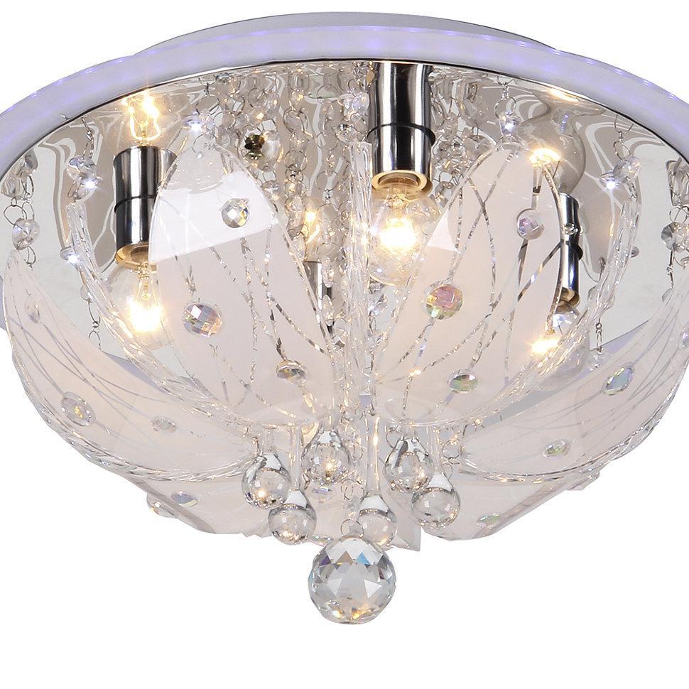Семь Огней создает продукт от эскиза до готового шедевра. Над созданием светильников трудятся одни из лучших дизайнеров и конструкторов. Наша компания предъявляет высокие требования к производимой продукции, что подтверждено сертификатами качества.ПРЕИМУЩЕСТВАСтильный дизайнНаличие LED подсветкиФункция ночного освещения с низким потреблением электроэнергииУправление функциями люстры с помощью пульта ДУ либо с помощью выключателяПРИМЕНЕНИЕПотолочная люстра предназначена для основного освещения помещенийЛюстра подойдет в гостиную, зал, спальню или кухнюКОНСТРУКЦИЯ И МАТЕРИАЛЫЛюстра изготовлена из высококачественных материалов и является безопасной для человека, животных и окружающей средыИспользуемые материалы:металл, стекло, хрустальИсточник света - лампы накаливания мощностью до 60 Вт, светодиодные лампы мощностью до 12 ВтКрепление - накладным способом, с помощью шуруповУдобный крепеж подойдет под все виды потолков: бетон, гипсокартон, натяжные и деревянные потолки.