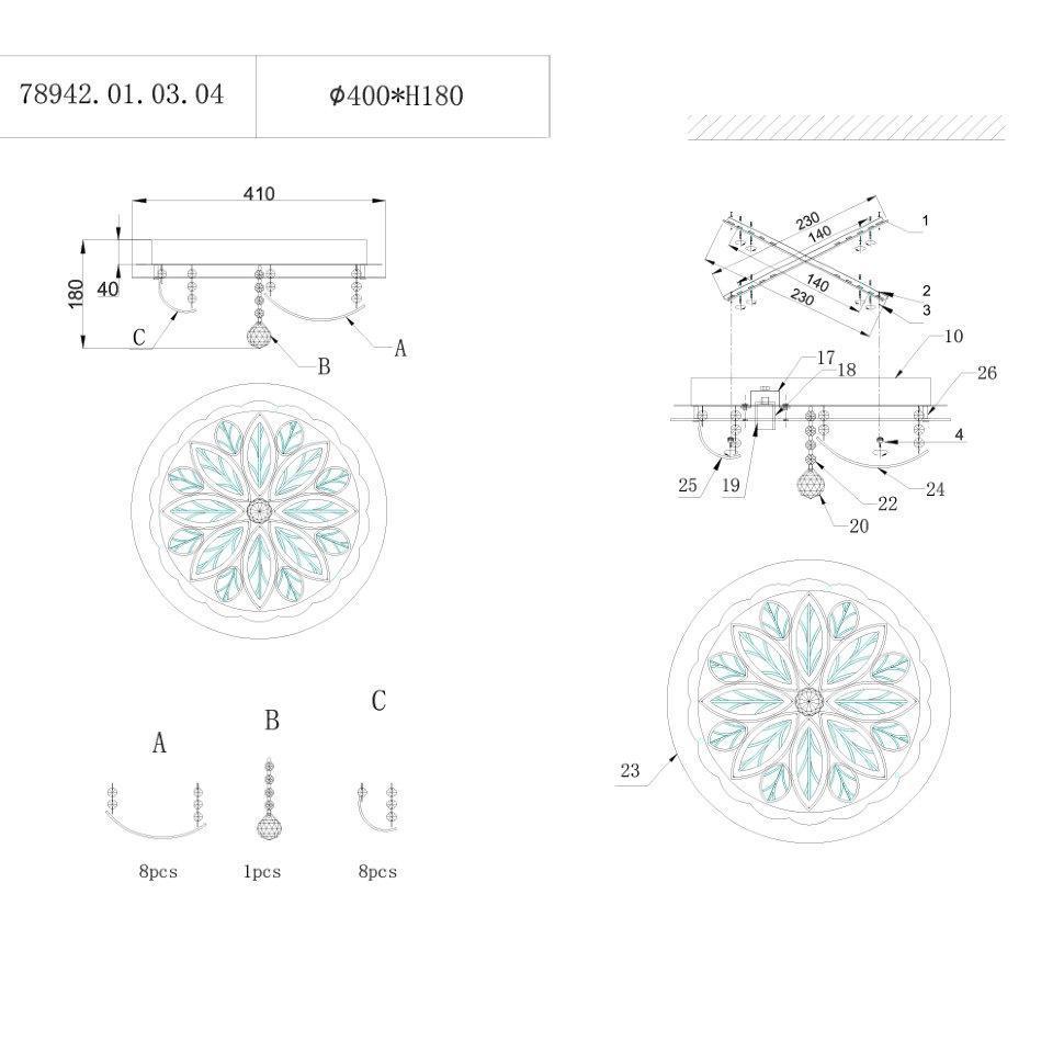 Семь Огней создает продукт от эскиза до готового шедевра. Над созданием светильников трудятся одни из лучших дизайнеров и конструкторов. Наша компания предъявляет высокие требования к производимой продукции, что подтверждено сертификатами качества.ПРЕИМУЩЕСТВАСтильный дизайнНаличие LED подсветкиФункция ночного освещения с низким потреблением электроэнергииУправление функциями люстры с помощью пульта ДУ либо с помощью выключателяПРИМЕНЕНИЕПотолочная люстра предназначена для основного освещения помещенийЛюстра подойдет в гостиную, зал, спальню или кухнюКОНСТРУКЦИЯ И МАТЕРИАЛЫЛюстра изготовлена из высококачественных материалов и является безопасной для человека, животных и окружающей средыИспользуемые материалы:металл, стекло, хрустальИсточник света - лампы накаливания мощностью до 60 Вт, светодиодные лампы мощностью до 12 ВтКрепление - накладным способом, с помощью шуруповУдобный крепеж подойдет под все виды потолков: бетон, гипсокартон, натяжные и деревянные потолки.