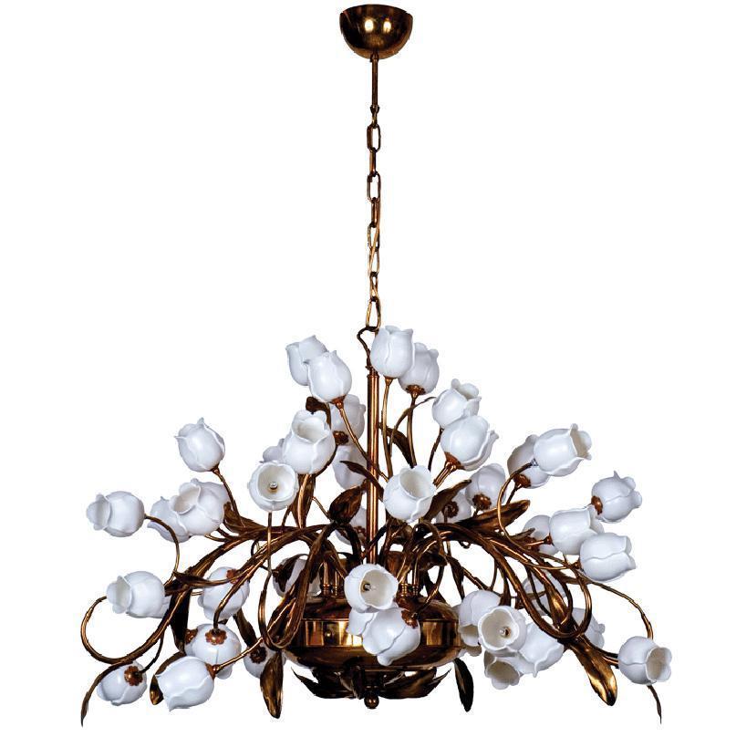 Данная модель входит в состав коллекции Иоланта и исполнена в стиле флористика. Люстра имеет высоту 1500 мм и диаметр 1000 мм. Работает при напряжении 220-240 V.