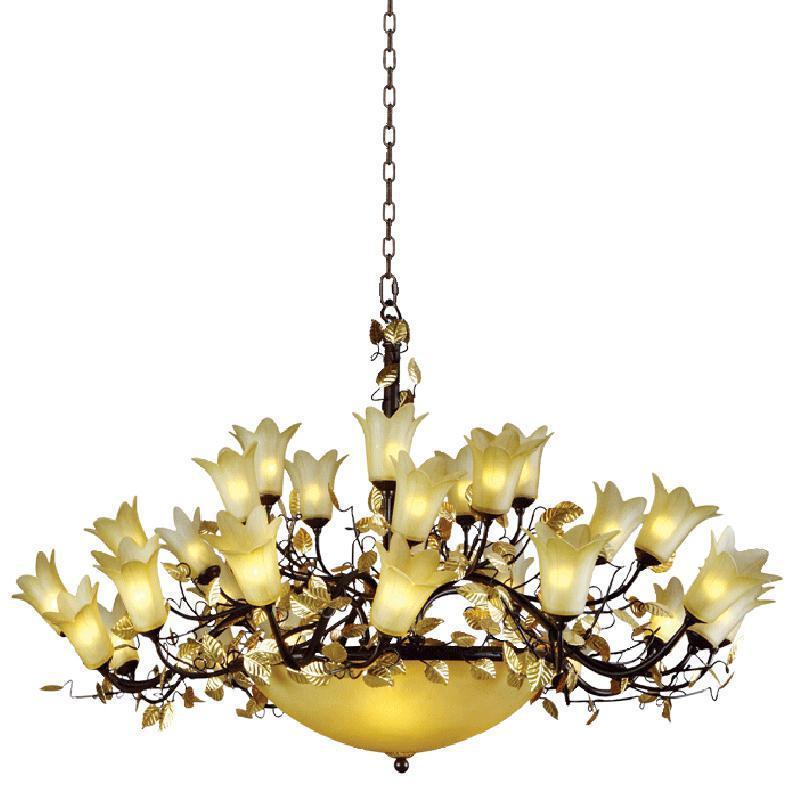 Данная модель входит в состав коллекции Летиция и исполнена в стиле флористика. Люстра имеет высоту 1550 мм и диаметр 1100 мм. Работает при напряжении 220-240 V.
