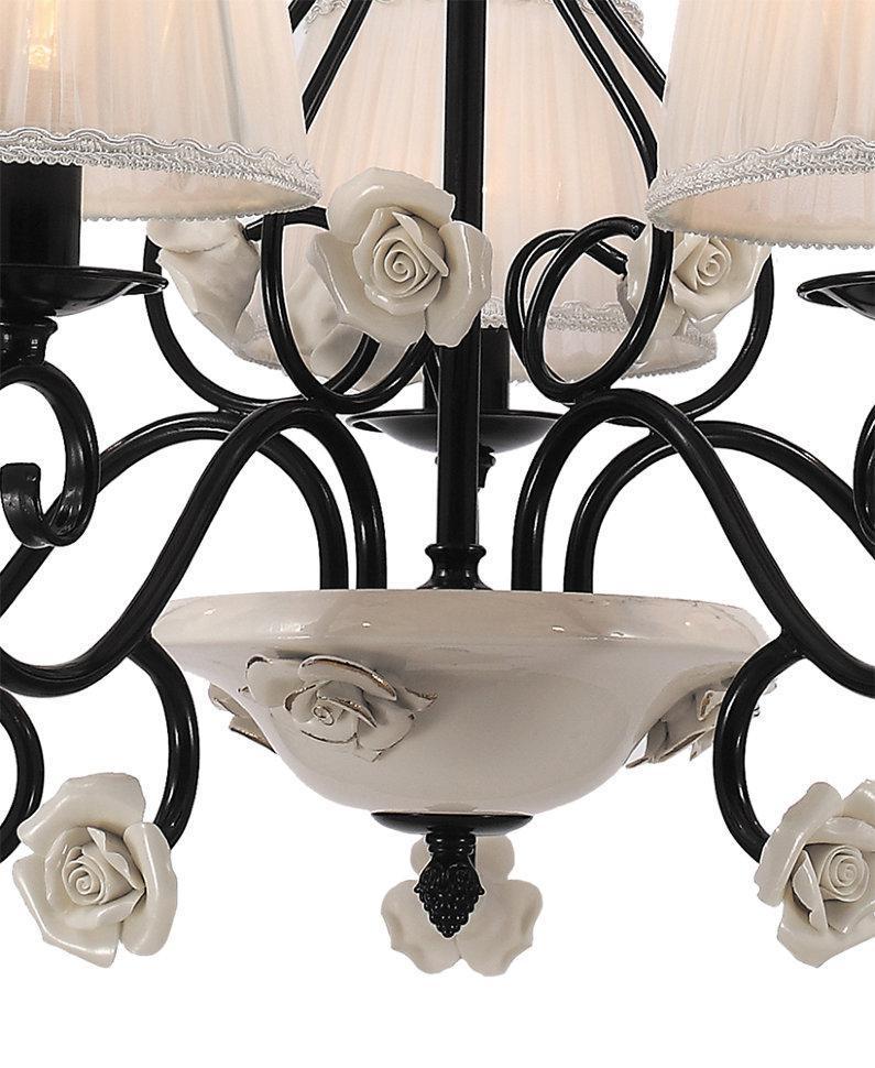 ЛЕТИСИЯ. "ЛЕТИСИЯ" - истинный свет классики в вашем доме. Изгибы рожков блестящего черного цвета плавны и изящны. На них распустились прекрасные хрустальные цветы. Чаши, декоративный элемент у основания люстры выполнены из металла и украшены резьбой с использованием классического растительного орнамента. Абажуры - тончайшая ткань, слегка присобрана у основания. Края абажуров обрамлены незатейливым кантом, добавляя им элегантности и шарма.