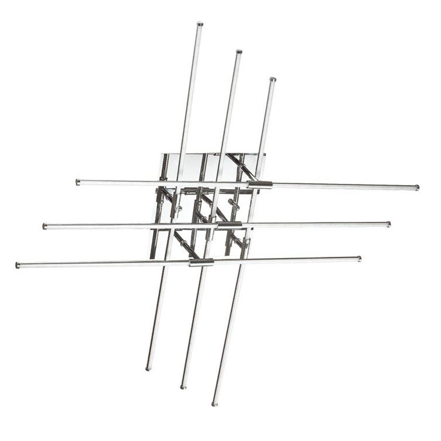 Данная модель входит в состав коллекции CROSS и исполнена в стиле техно. Люстра имеет высоту 130 мм и ширину 830 мм. Работает при напряжении 230 V.