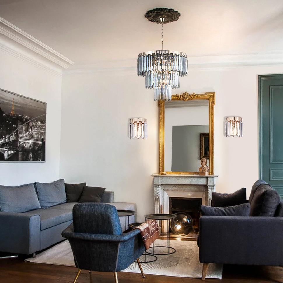 Семь Огней создает продукт от эскиза до готового шедевра. Над созданием светильников трудятся одни из лучших дизайнеров и конструкторов. Наша компания предъявляет высокие требования к производимой продукции, что подтверждено сертификатами качества.ПРЕИМУЩЕСТВАЭлегантный и стильный дизайнХрусталь непревзойденного качестваХорошие осветительные характеристики, благодаря многогранности хрусталяПРИМЕНЕНИЕПредназначена для основного освещения помещенийЛюстра подойдет в гостиную, зал, спальню, столовуюКОНСТРУКЦИЯ И МАТЕРИАЛЫЛюстра изготовлена из высококачественных материалов и является безопасной для человека, животных и окружающей средыКонструкция позволяет регулировать высоту люстры изменением количества звеньев цепиИспользуемые материалы: металл, хрустальИсточник света - лампы накаливания мощностью до 40Вт, светодиодные лампы мощностью до 12ВтКрепление - подвесным способом на крюкУдобный крепеж подойдет под все виды потолков: бетон, гипсокартон, натяжные и деревянные потолки.