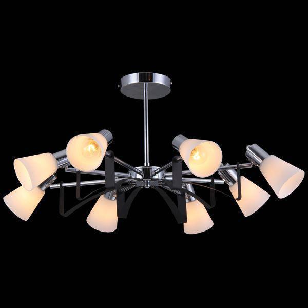Данная модель входит в состав коллекции 11398 и исполнена в стиле модерн. Люстра имеет высоту 370 мм и диаметр 680 мм. Работает при напряжении 220-240 V.