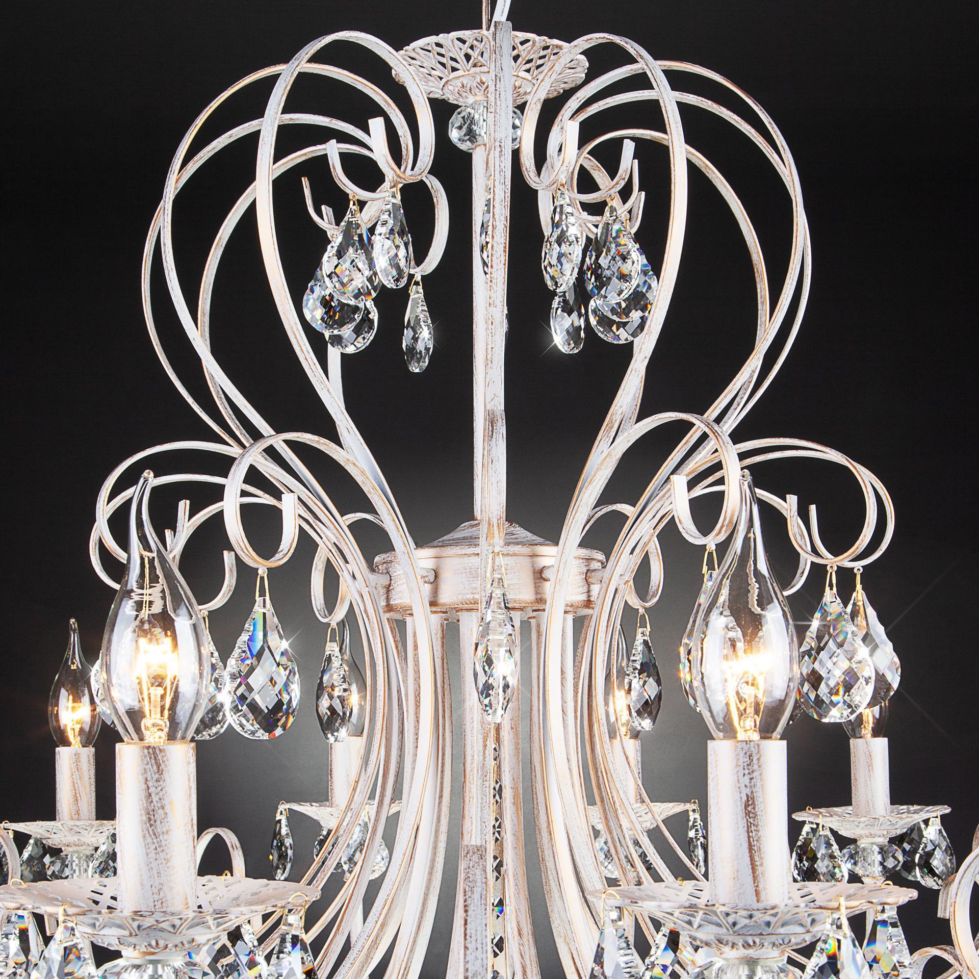 Классическая хрустальная люстра на 12 рожков в цвете белый с золотом / тонированный хрусталь преобразит потолочное пространство и создаст в вашем помещении комфортное полноценное освещение на площади 48 м кв. Изящные формы и классический стиль добавят вашей гостиной утонченного аристократизма. Декоративные рожки в виде подсвечников, украшенные сменными лампами с цоколем E14 типа свеча на ветру переливаются на свету яркими завораживающими бликами. В производстве подвесной люстры использовали особое стекло с эффектной огранкой и высококачественный металл с надежным защитным покрытием. В нашем интернет-магазине вы можете купить подвесную хрустальную люстру по выгодной цене с доставкой по Москве и России.