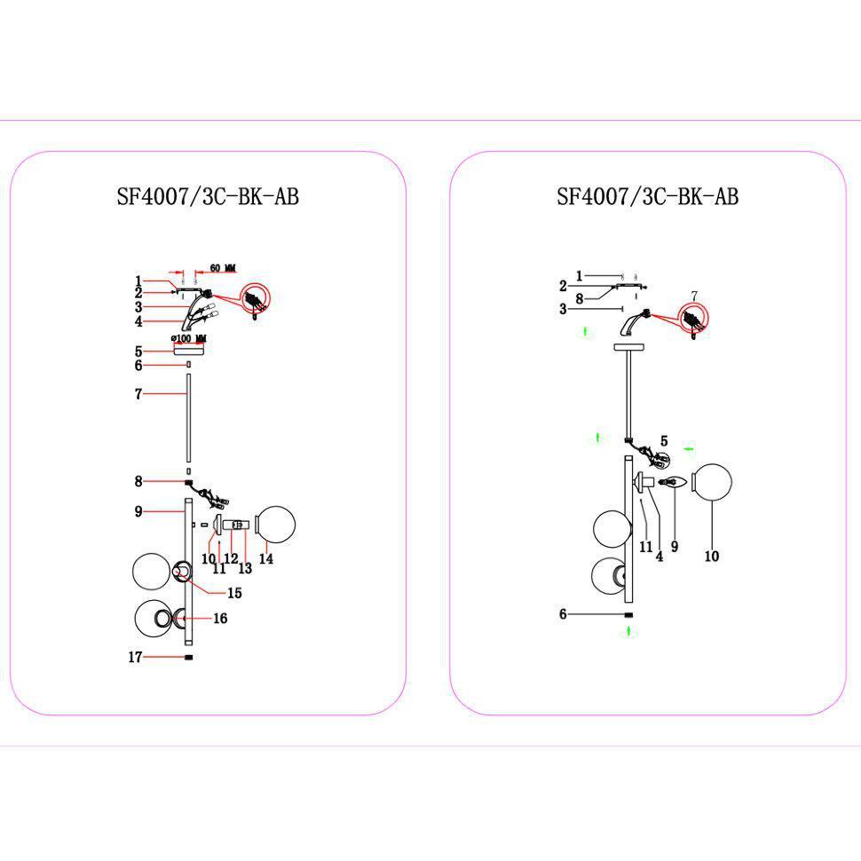 Люстра SF4007/3C-BK-AB MEOLO