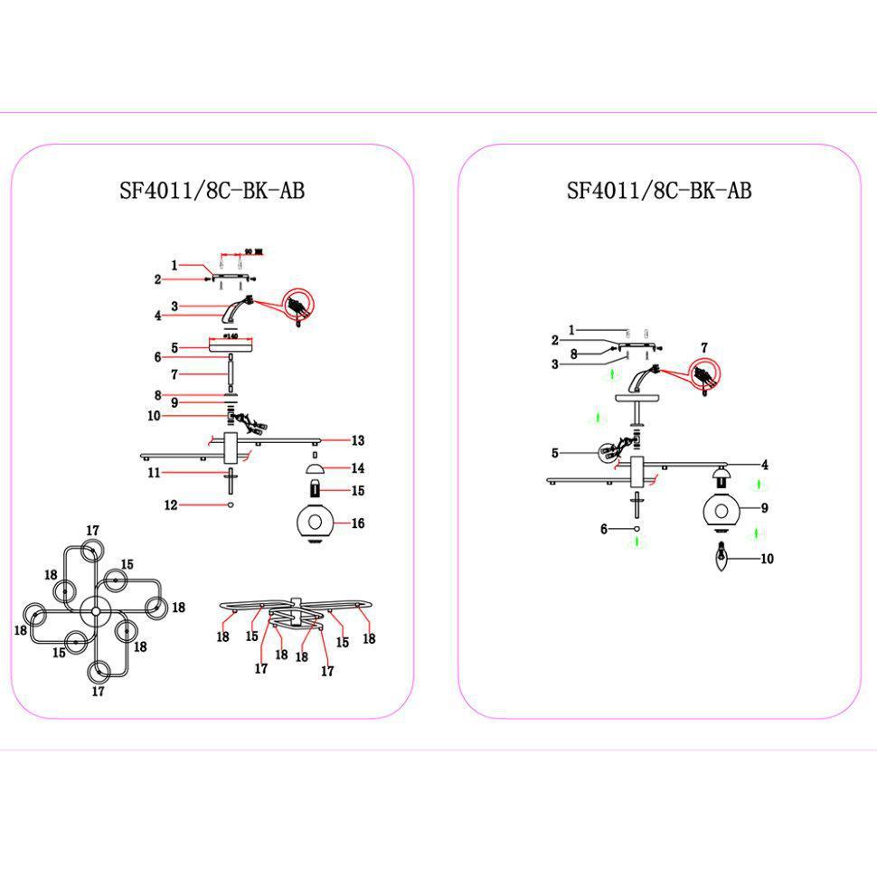 Люстра SF4011/8C-BK-AB TEOLO