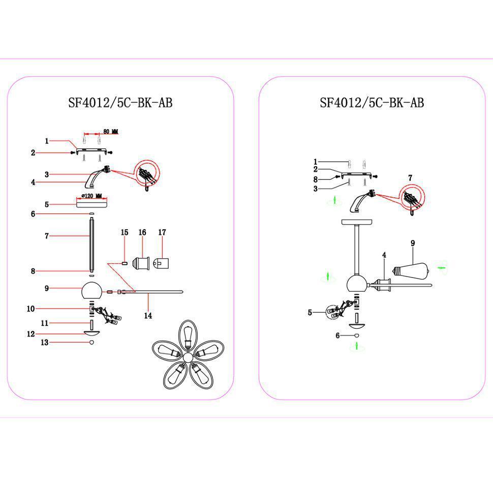 Люстра SF4012/5C-BK-AB GRANITI