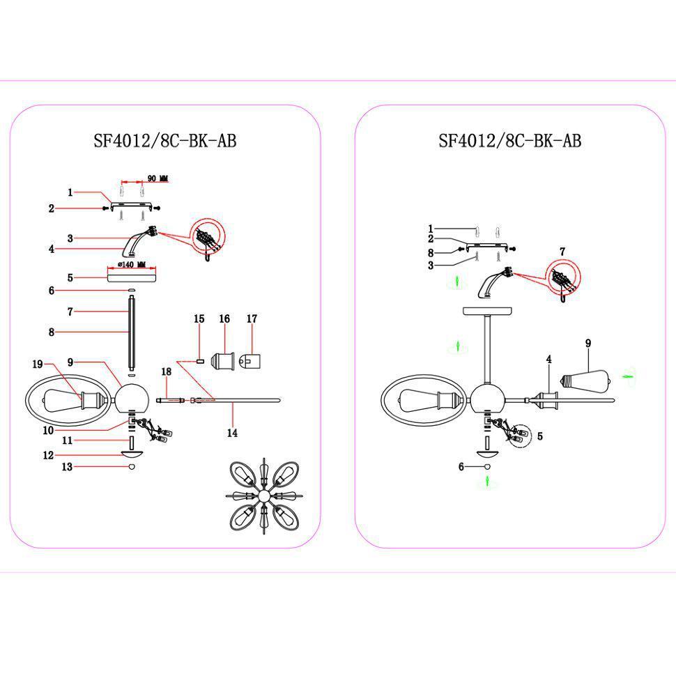 Люстра SF4012/8C-BK-AB GRANITI